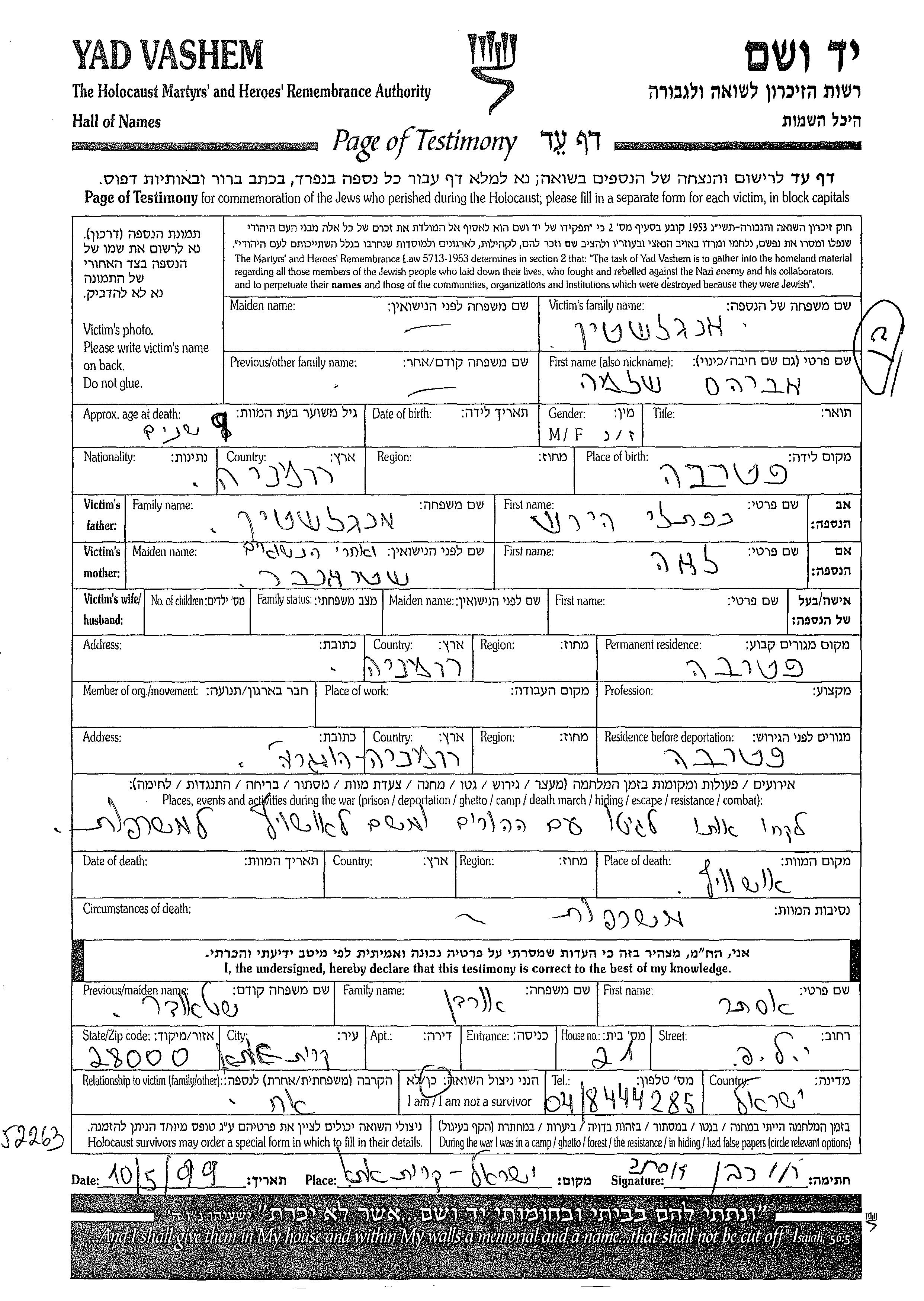 Yad Vashem - Pages of Testimony Names Memorial Collection