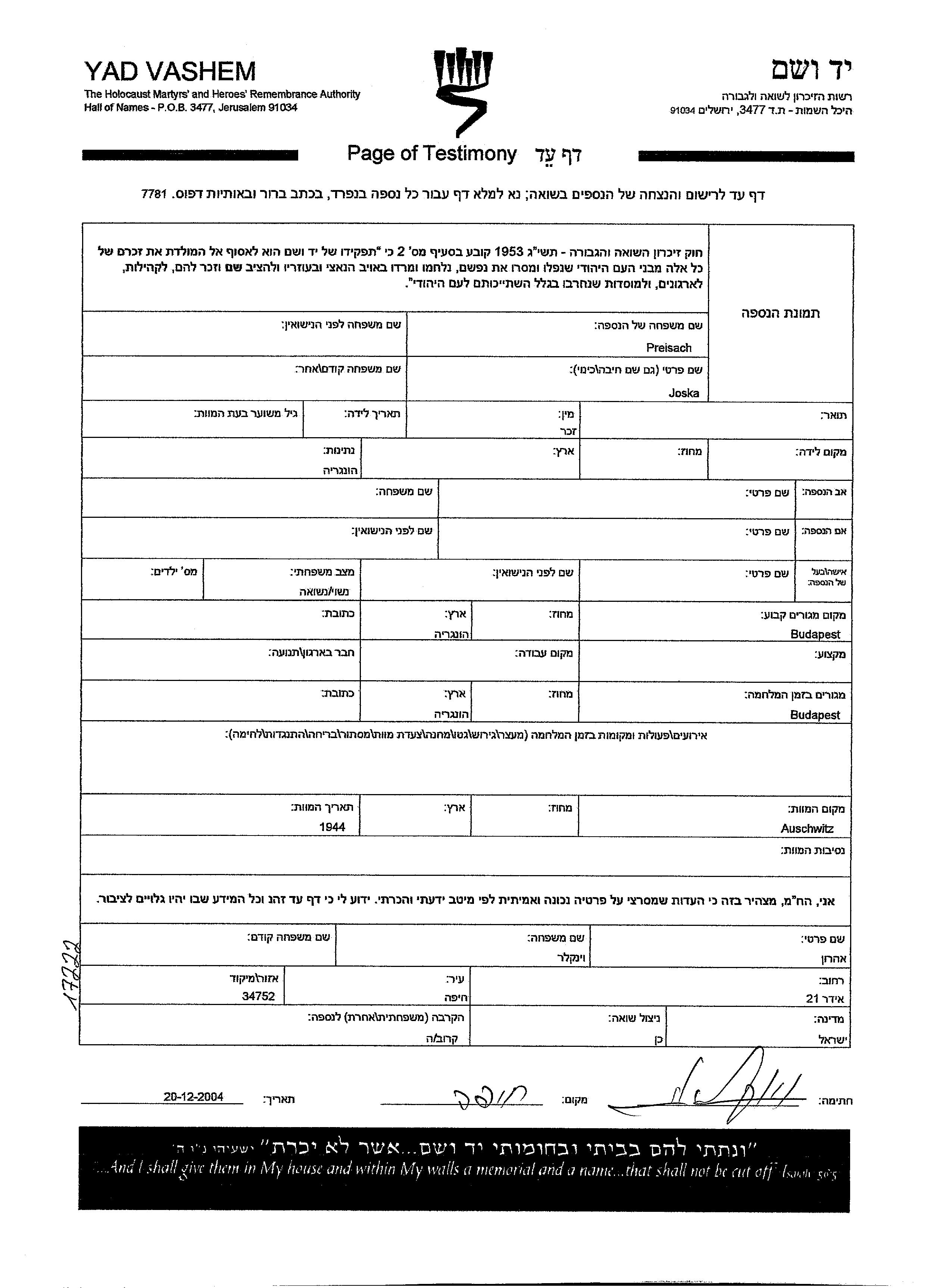 Recherche par date de la mort pendant la période de la Shoah: 1933-1945. Sélectionnez 'Exact'; dans la liste pour rechercher l'année exacte, ou sélectionner '+/- 2 ans'; ou '+/- 5 ans