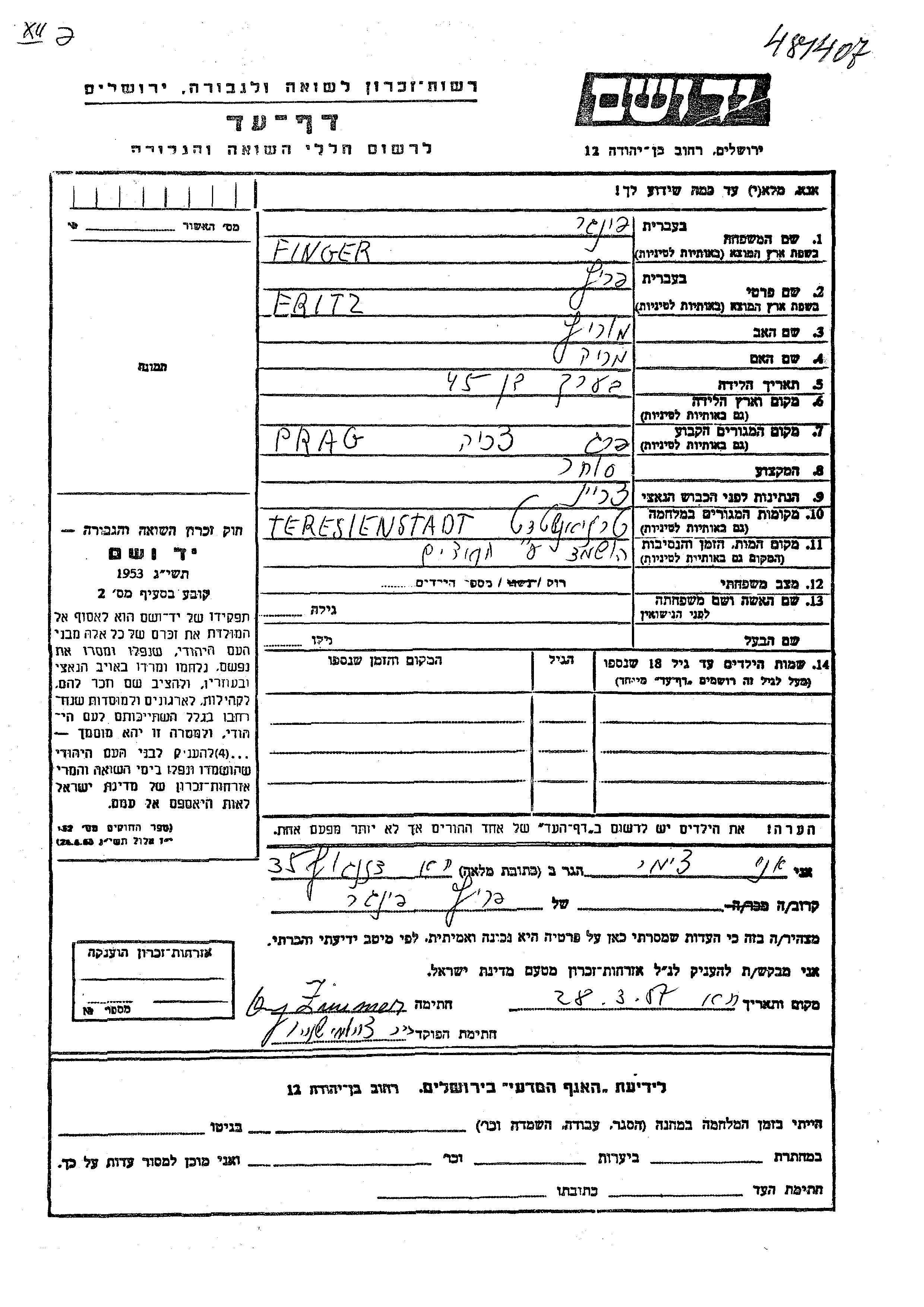 Fritz Finger est né fils de Moritz et de Maria. Il était Commerçant/e et Célibataire. Avant la seconde guerre mondiale il vivait à Prague, Tchécoslovaquie. Au cours de la guerre, il était à Theresienstadt, Tchécoslovaquie.