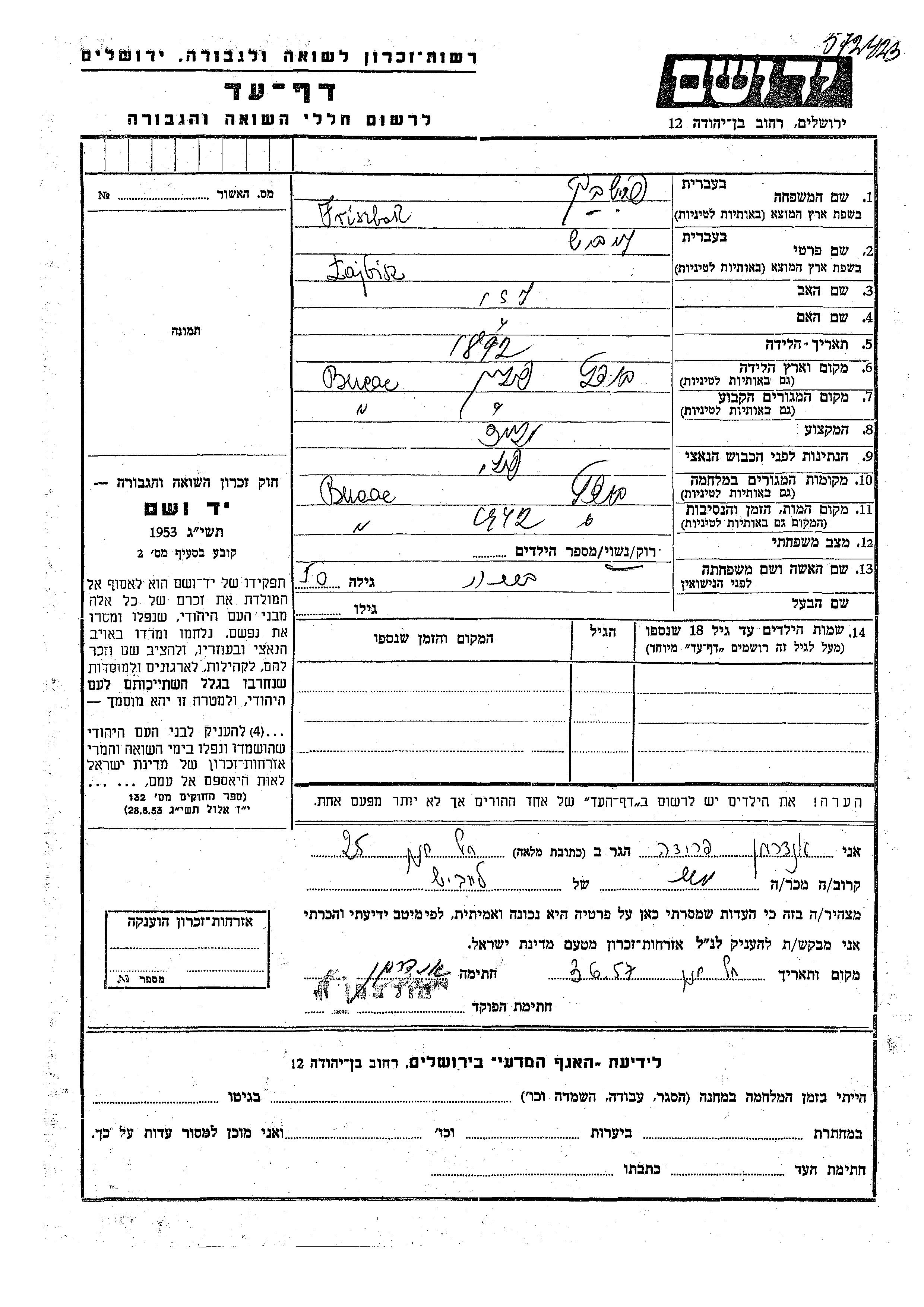 Yad Vashem - Pages of Testimony Names Memorial Collection