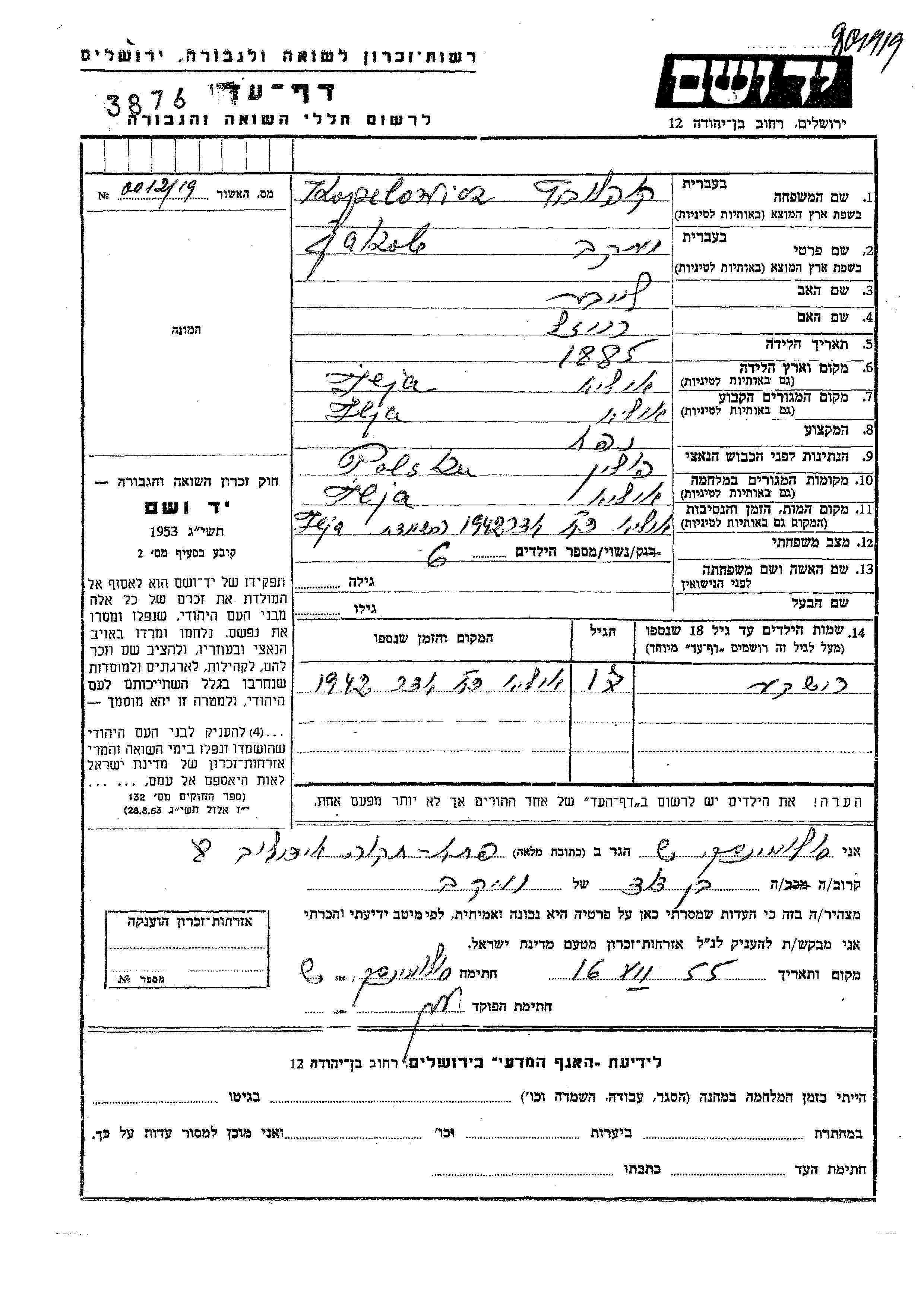 Yad Vashem - Pages of Testimony Names Memorial Collection