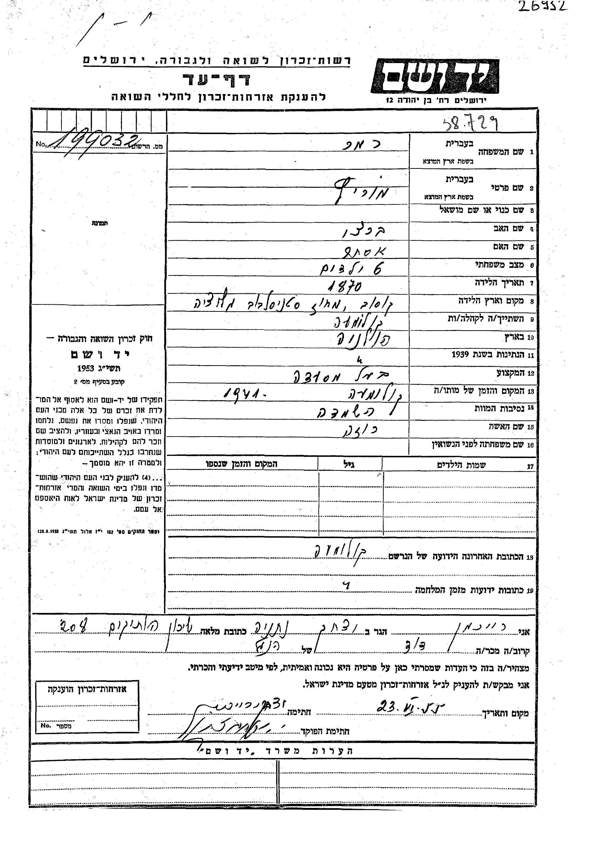 Yad Vashem - Pages of Testimony Names Memorial Collection