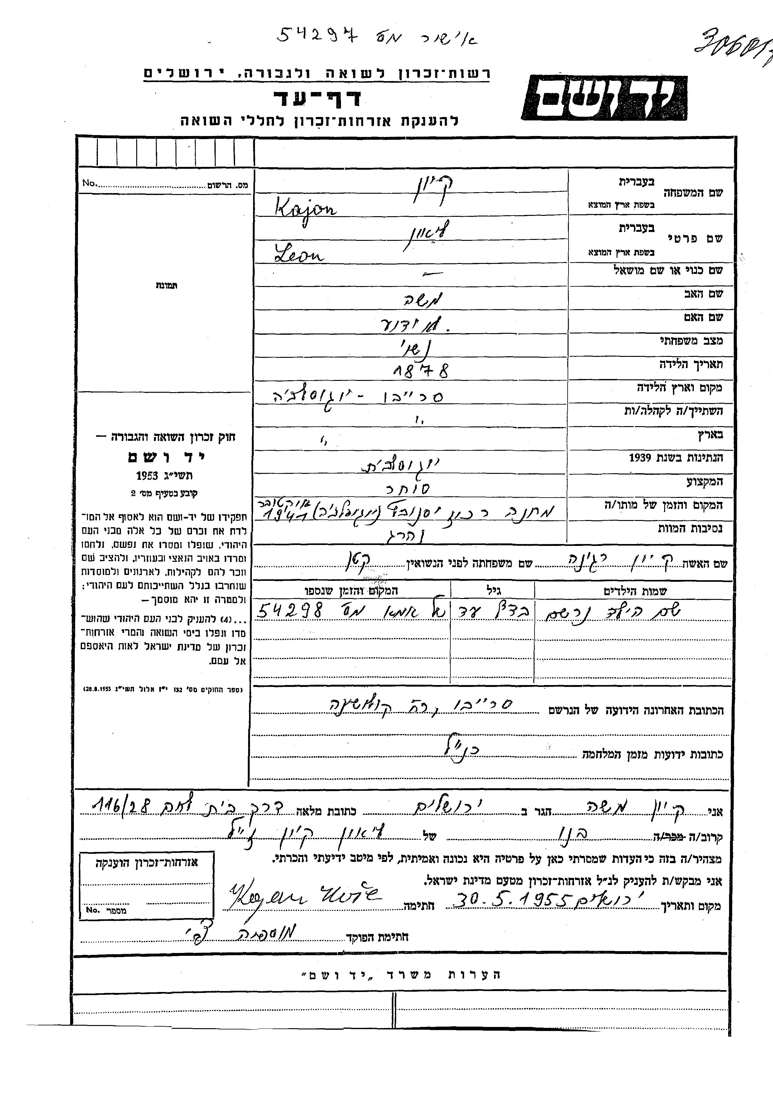 Lion Kajon est né à Sarajevo, Yugoslavie en 1878, fils de Moshe. Il était Commerçant/e et Mariée à Regina née Katan. Avant la seconde guerre mondiale il vivait à Sarajevo, Yugoslavie. Au cours de la guerre, il était à Sarajevo, Yugoslavie.
