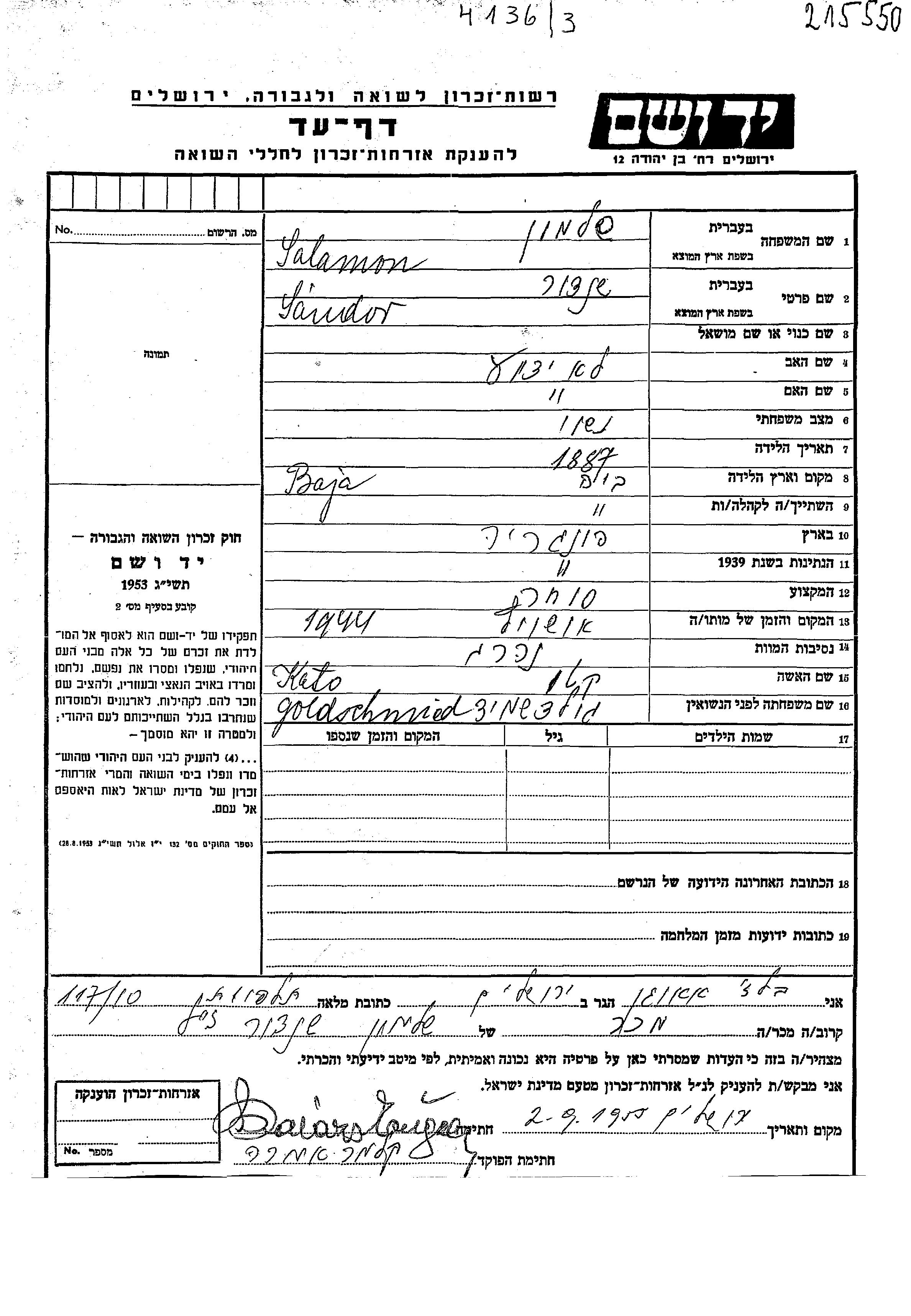 Yad Vashem - Pages of Testimony Names Memorial Collection