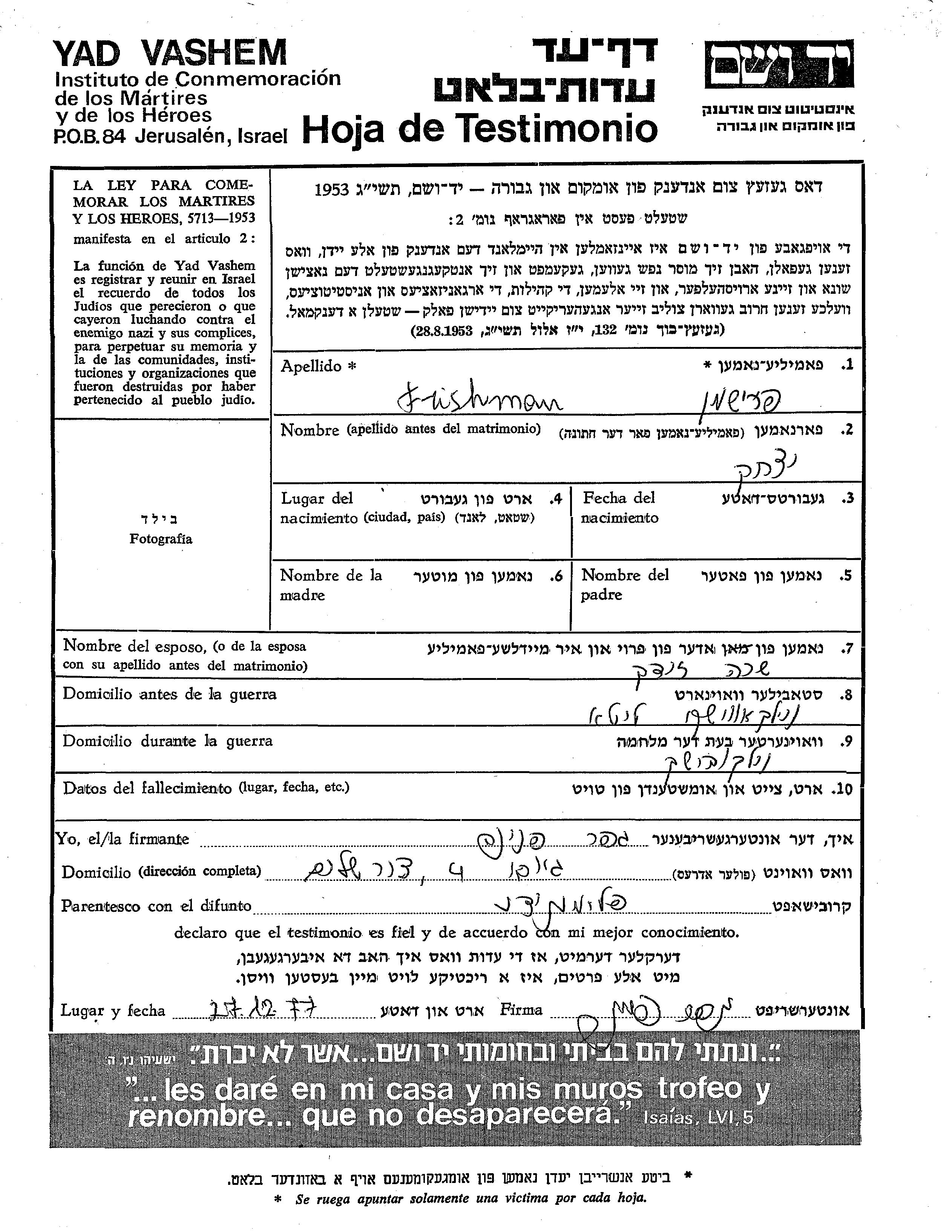 Yad Vashem - Pages of Testimony Names Memorial Collection