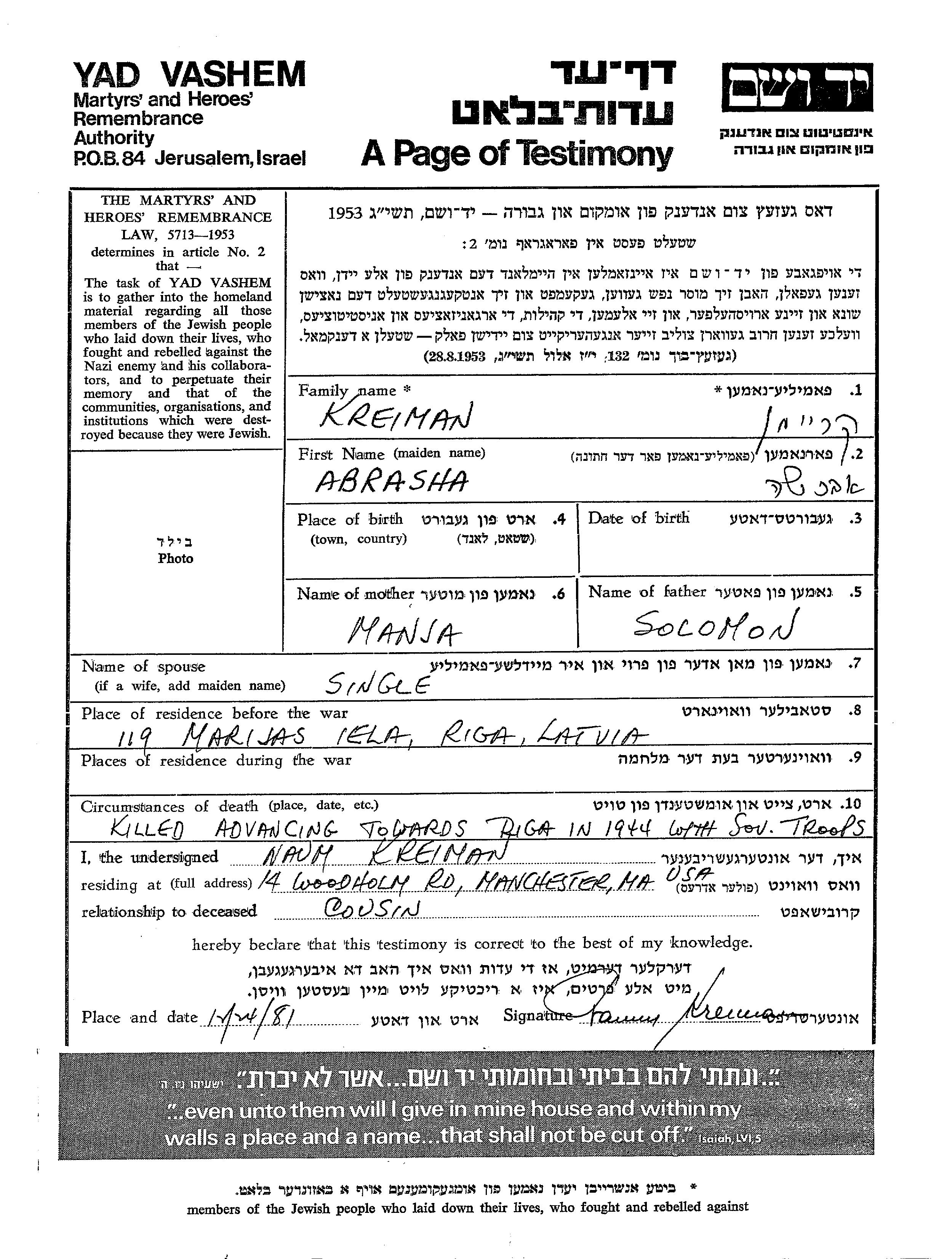 Recherche par lieu de résidence permanente avant la Shoah, ville, village, département, région ou pays.
