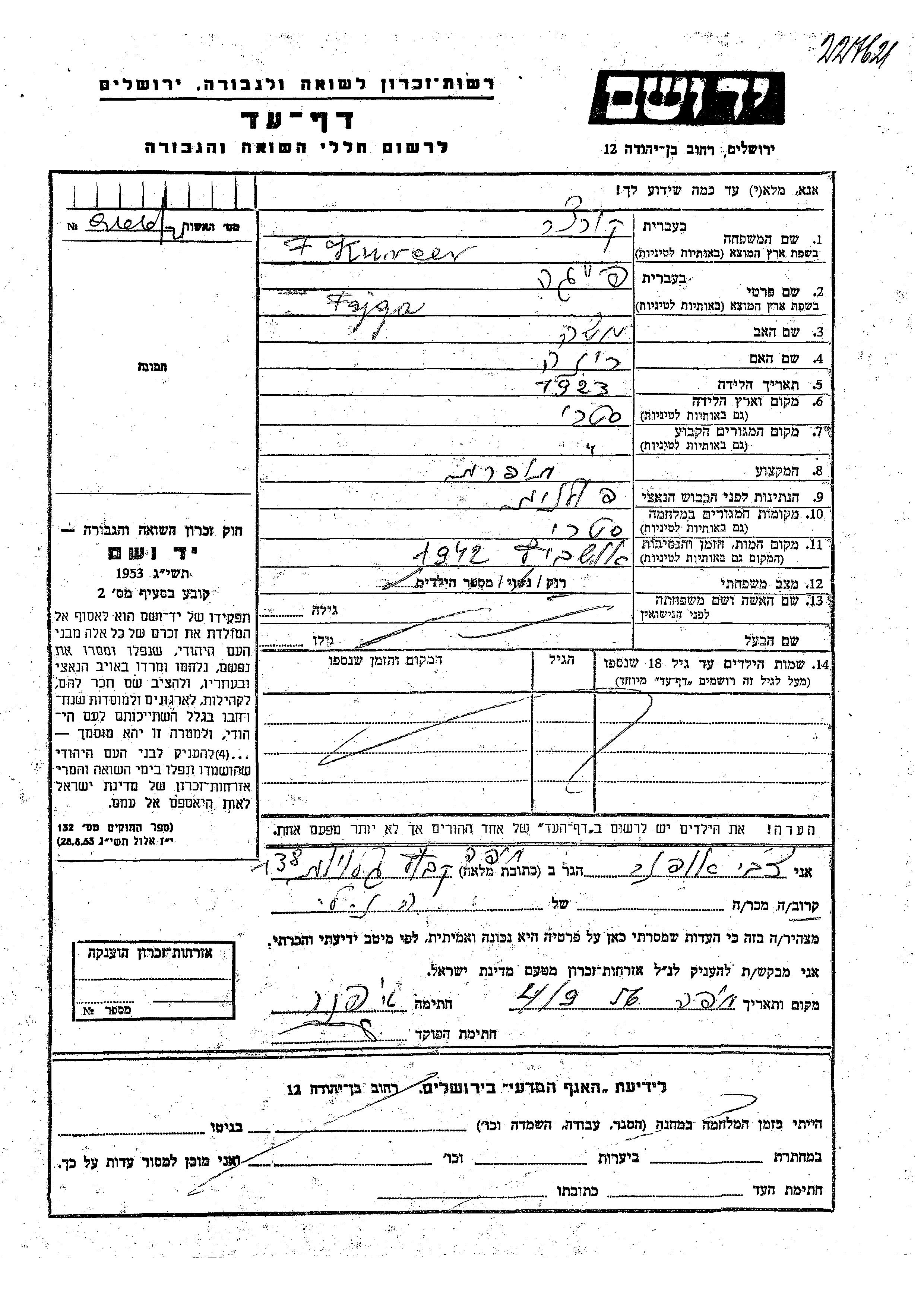 Yad Vashem - Pages of Testimony Names Memorial Collection