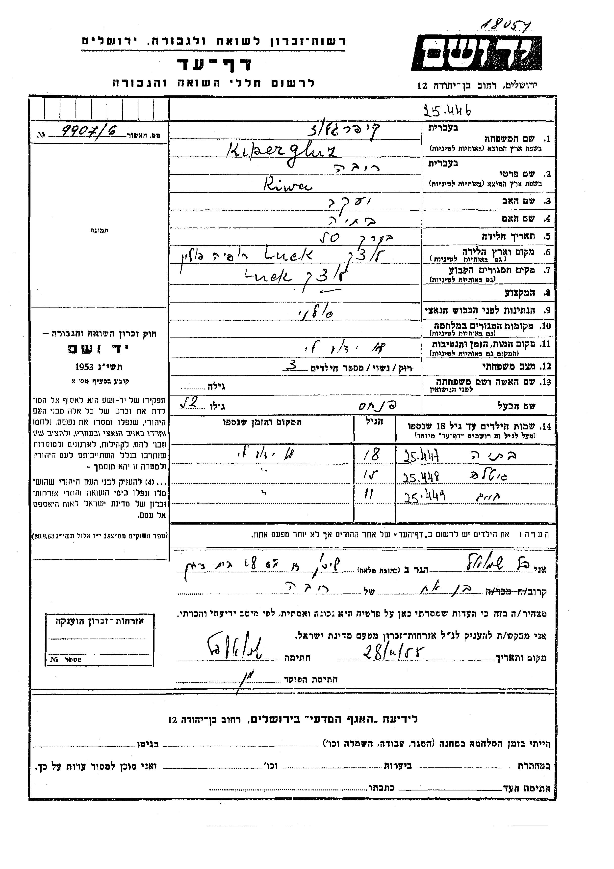 Yad Vashem - Pages of Testimony Names Memorial Collection
