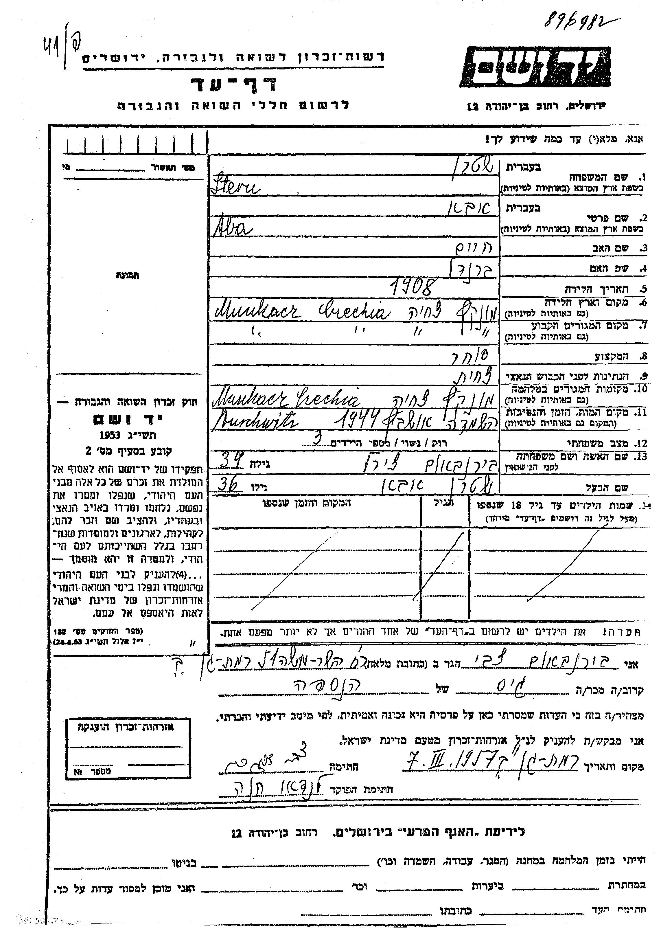 Yad Vashem - Pages of Testimony Names Memorial Collection