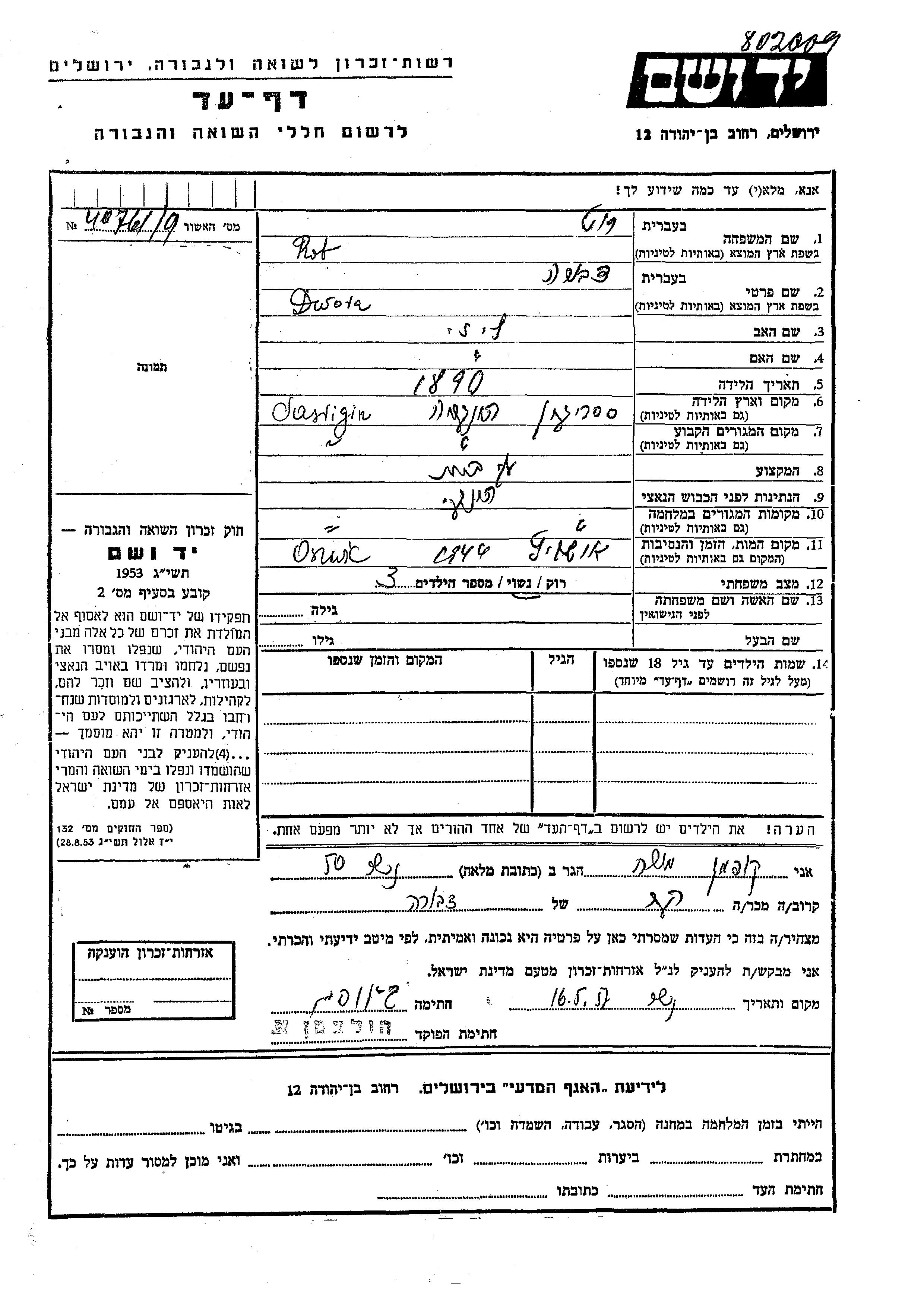 Yad Vashem - Pages of Testimony Names Memorial Collection