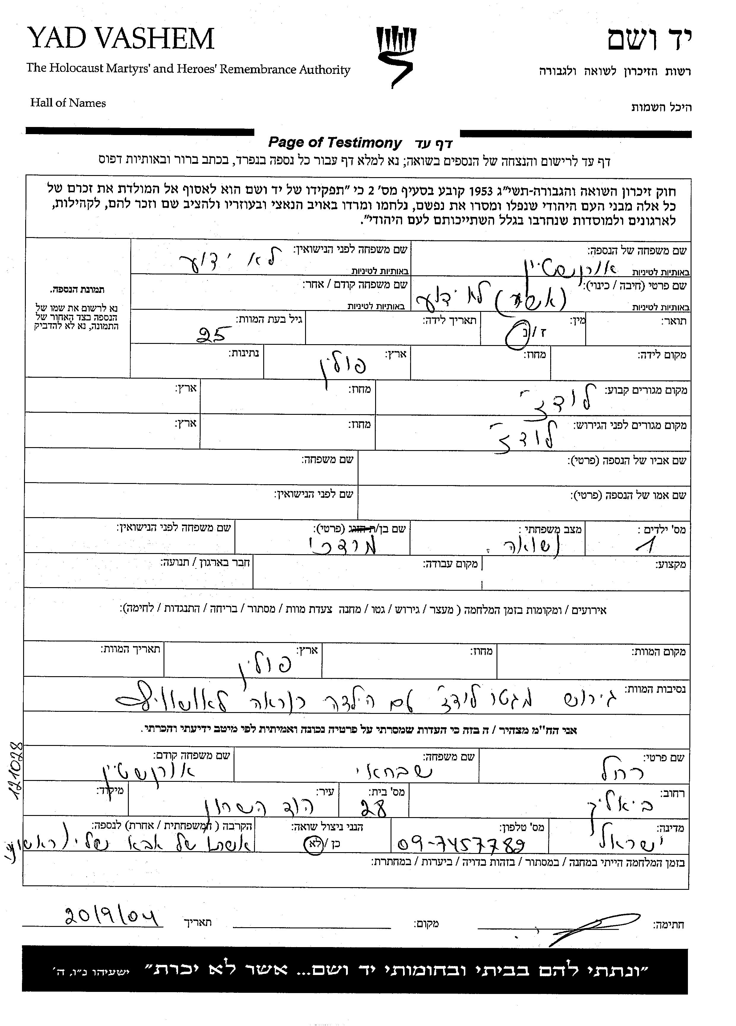 Yad Vashem - Pages of Testimony Names Memorial Collection