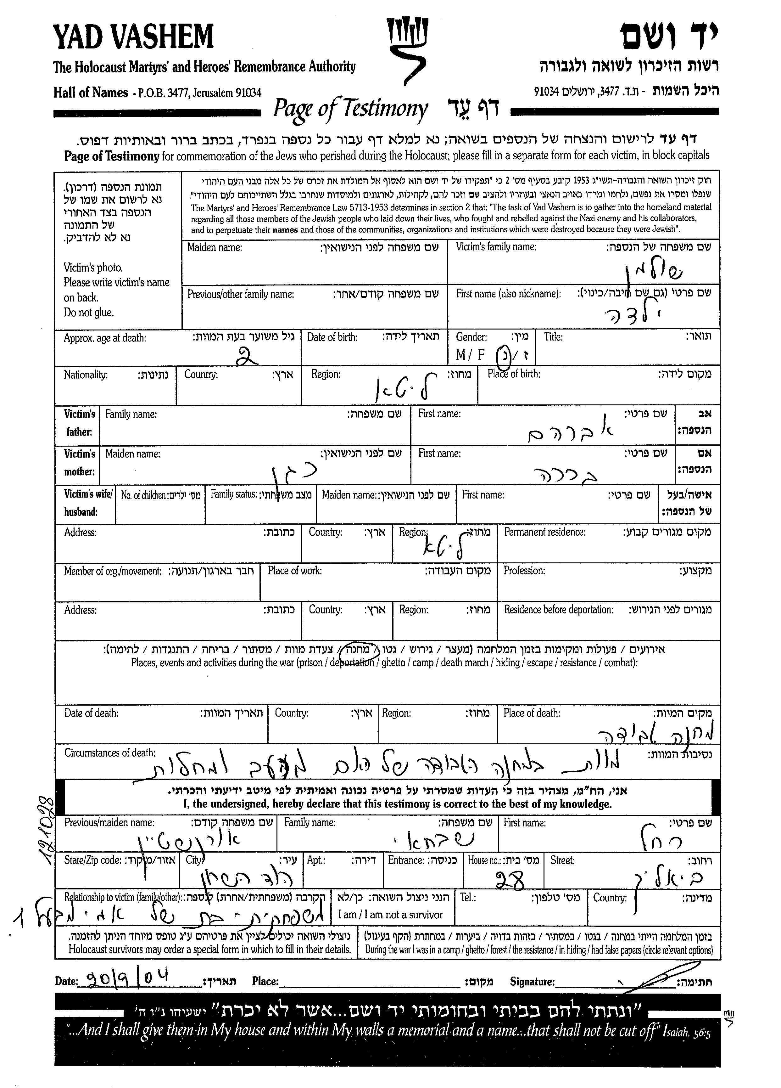 Yad Vashem - Pages of Testimony Names Memorial Collection
