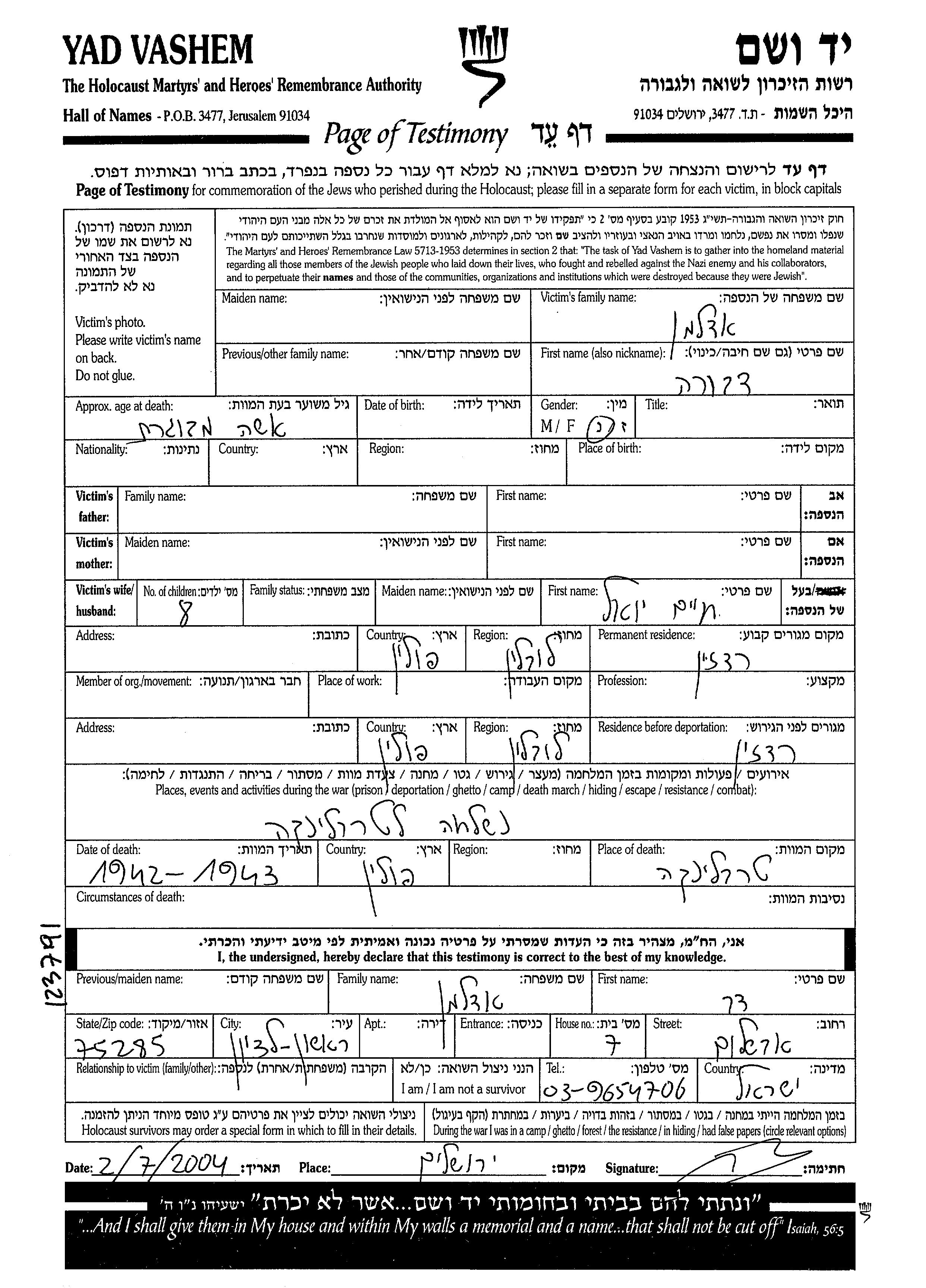 Recherche par date de la mort pendant la période de la Shoah: 1933-1945. Sélectionnez 'Exact'; dans la liste pour rechercher l'année exacte, ou sélectionner '+/- 2 ans'; ou '+/- 5 ans