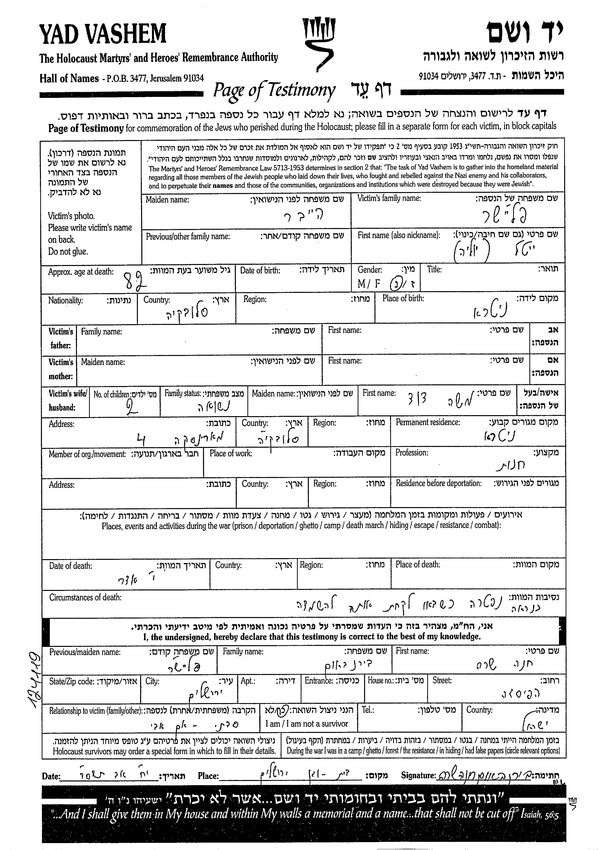 Yad Vashem - Pages of Testimony Names Memorial Collection