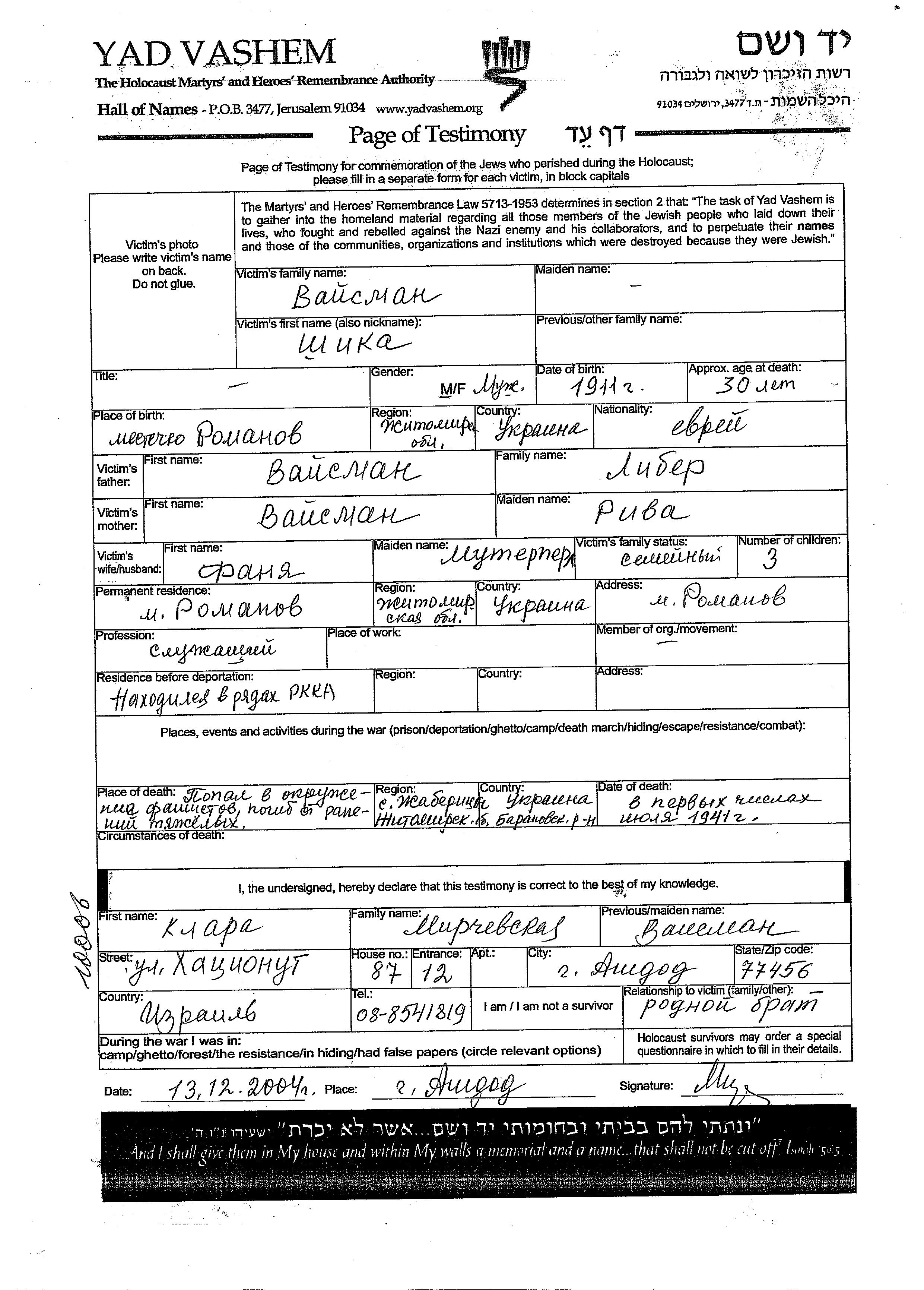 Recherche par date de la mort pendant la période de la Shoah: 1933-1945. Sélectionnez 'Exact'; dans la liste pour rechercher l'année exacte, ou sélectionner '+/- 2 ans'; ou '+/- 5 ans