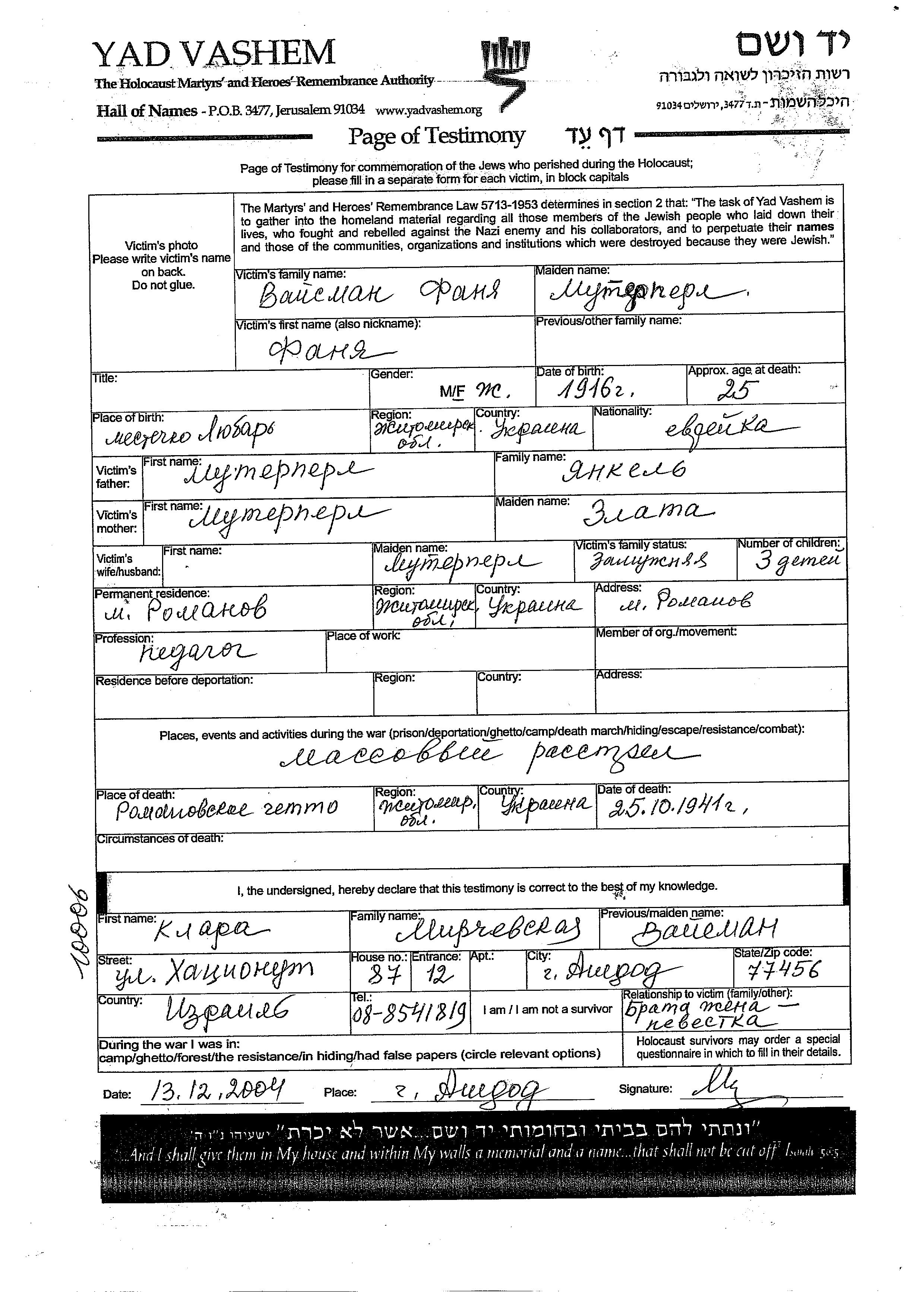 Recherche par date de la mort pendant la période de la Shoah: 1933-1945. Sélectionnez 'Exact'; dans la liste pour rechercher l'année exacte, ou sélectionner '+/- 2 ans'; ou '+/- 5 ans