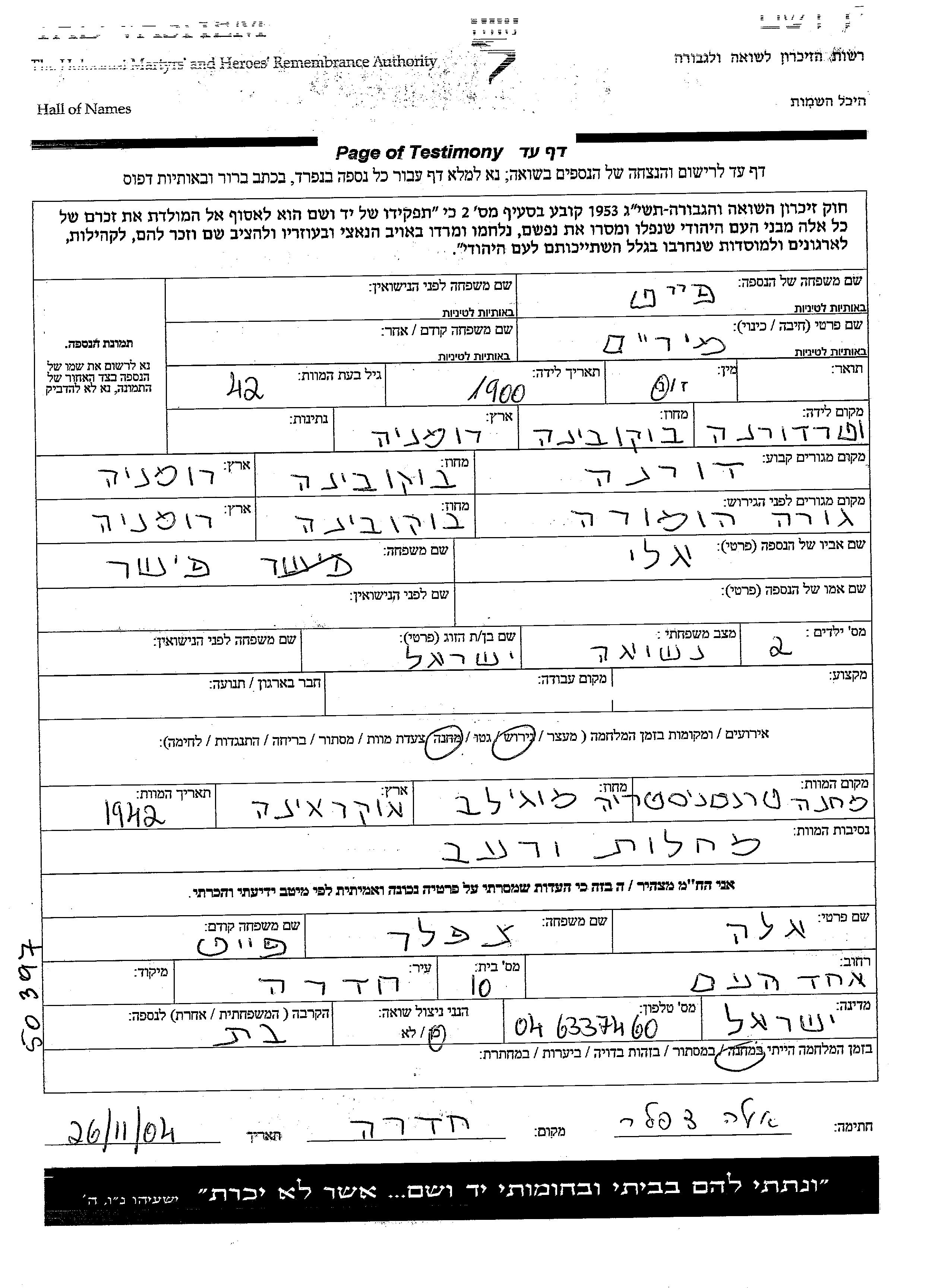Yad Vashem - Pages of Testimony Names Memorial Collection