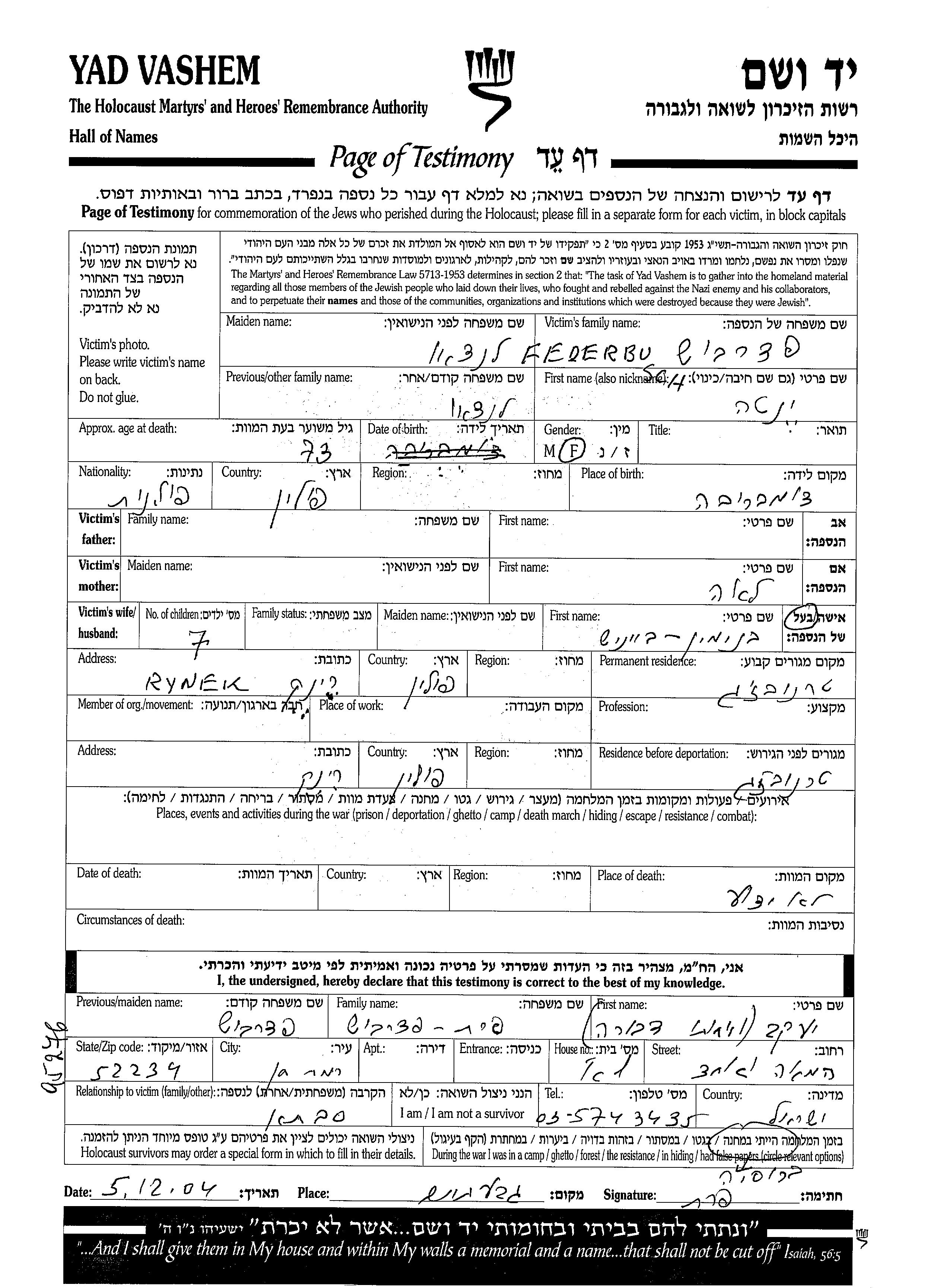 Yad Vashem - Pages of Testimony Names Memorial Collection