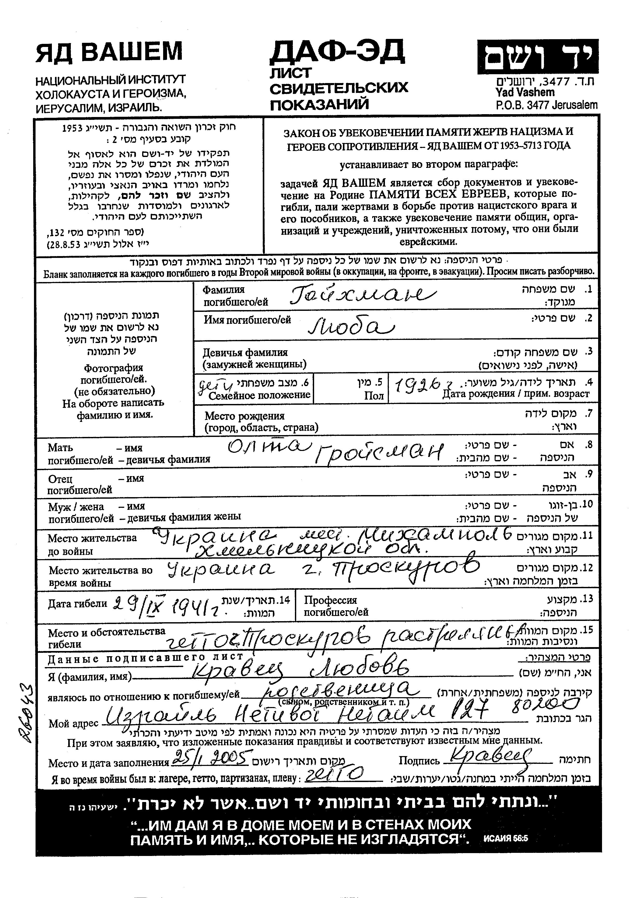 Recherche par date de la mort pendant la période de la Shoah: 1933-1945. Sélectionnez 'Exact'; dans la liste pour rechercher l'année exacte, ou sélectionner '+/- 2 ans'; ou '+/- 5 ans
