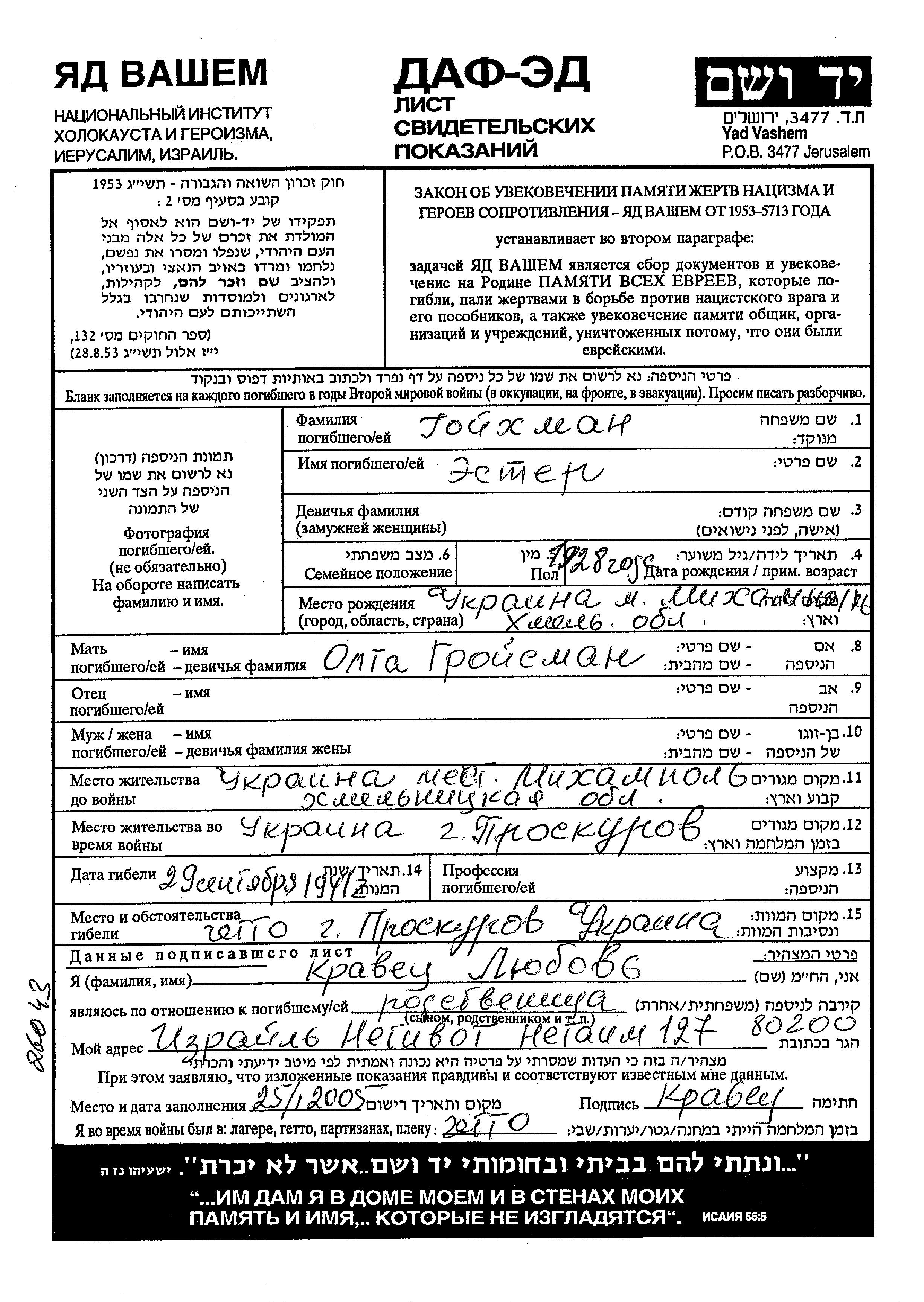 Au cours de la Shoah, les Juifs ont été assassinés de diverses façons : gazage, exécution par balle, immolation, noyade, enterrés vivants, épuisement par les travaux forcés, affamement, maladies et épidémies, privation de soins médicaux et de mesures de salubrité, etc. Certains Juifs ont mis fin à leur vie pour échapper à l'arrestation, aux persécutions ou aux souffrances permanentes et sans aucun espoir. Des dizaines de milliers de soldats juifs servant dans l’armée soviétique et capturés comme prisonniers de guerre furent sélectionnés comme juifs et assassinés. Beaucoup furent enregistrés comme «disparus au combat».