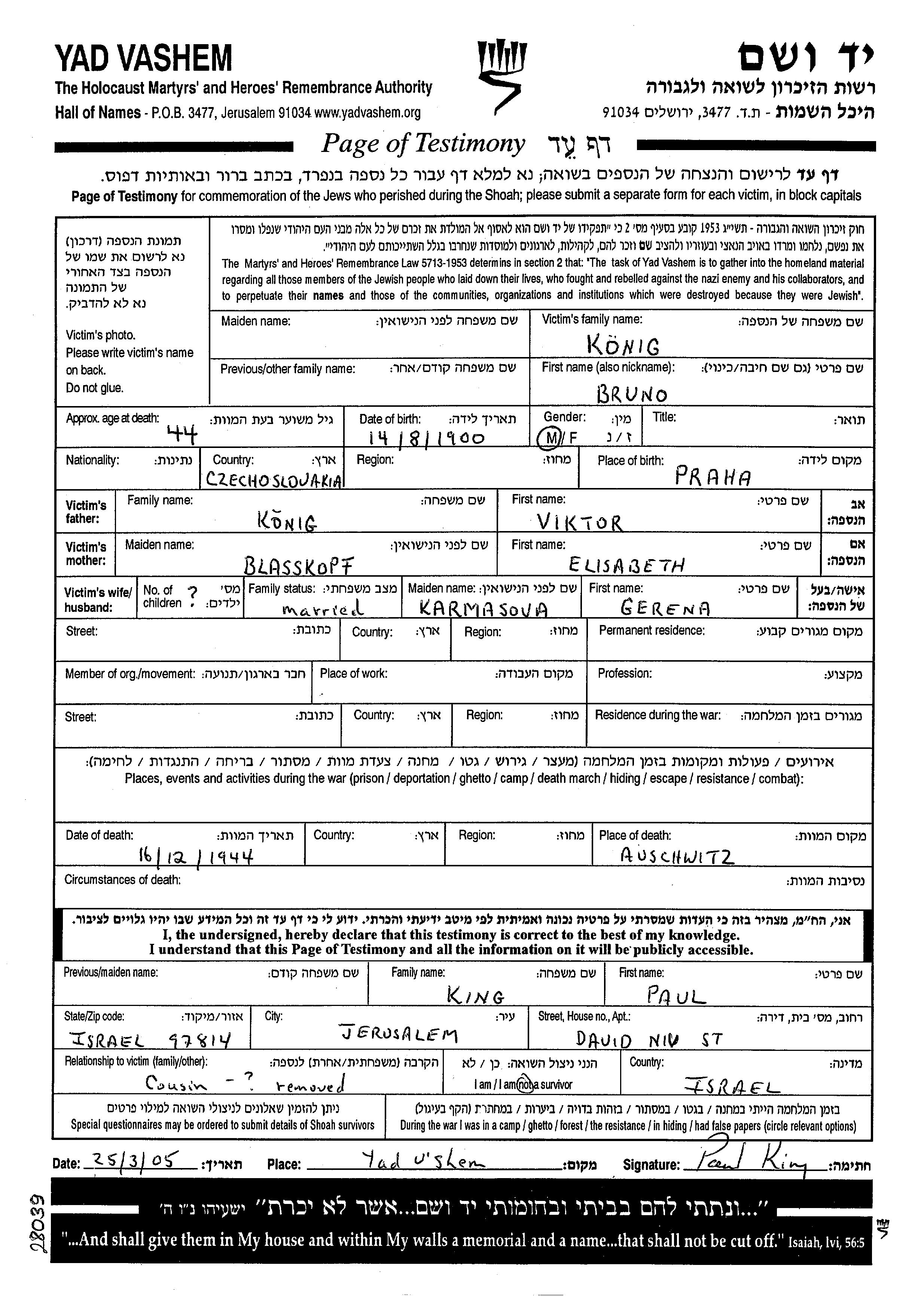 Yad Vashem - Pages of Testimony Names Memorial Collection