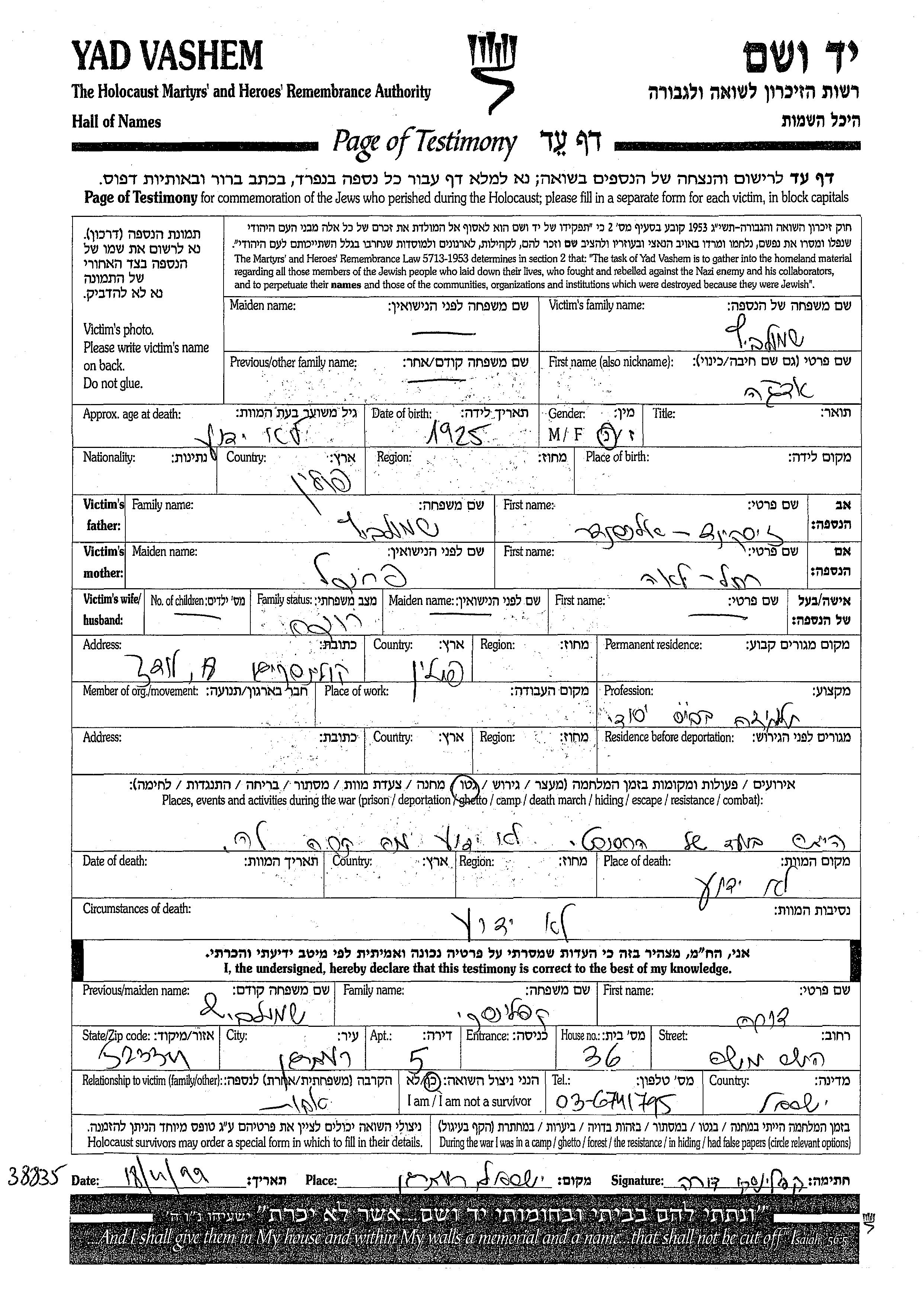 Yad Vashem - Pages of Testimony Names Memorial Collection