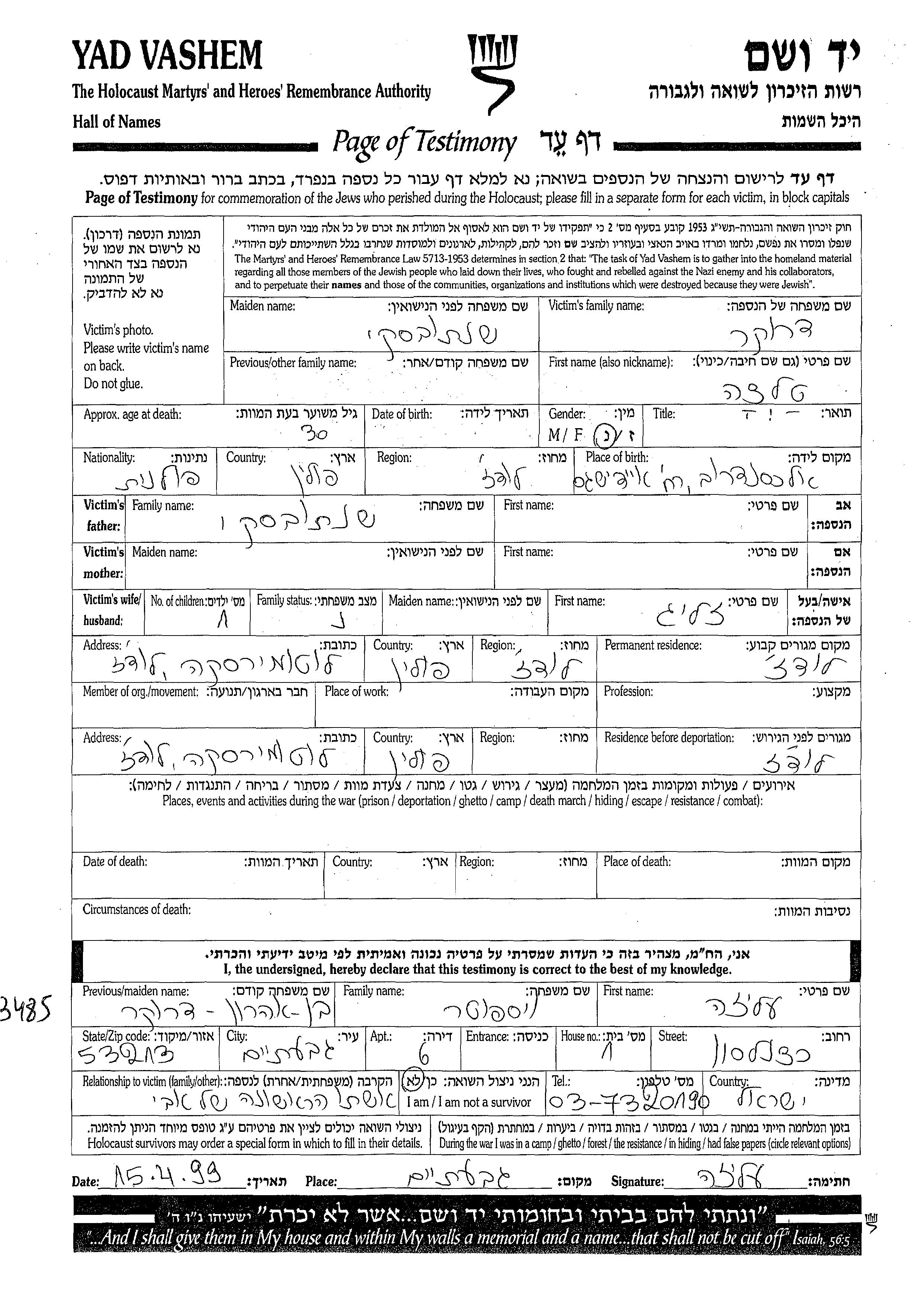 Yad Vashem - Pages of Testimony Names Memorial Collection