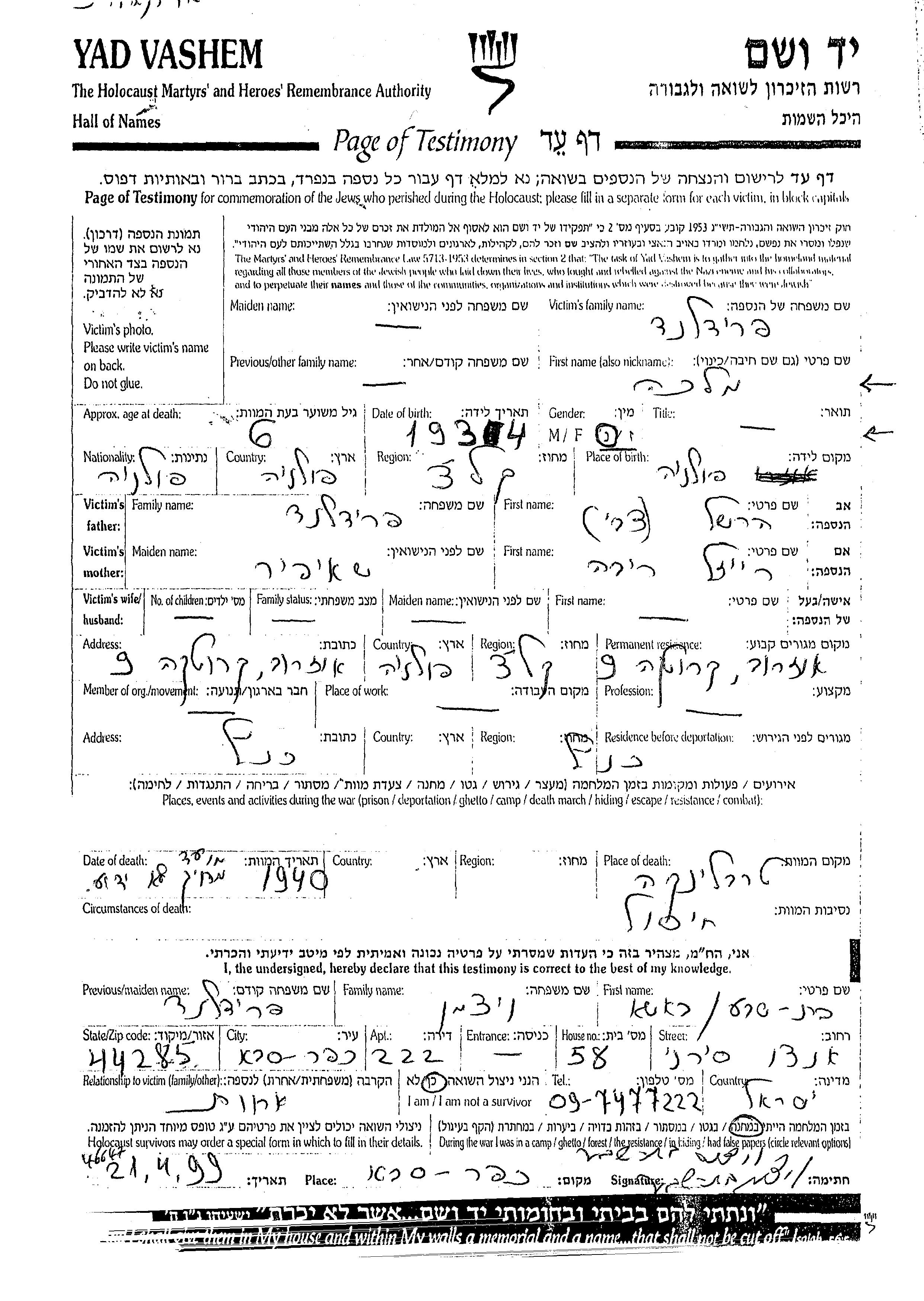 Yad Vashem - Pages of Testimony Names Memorial Collection