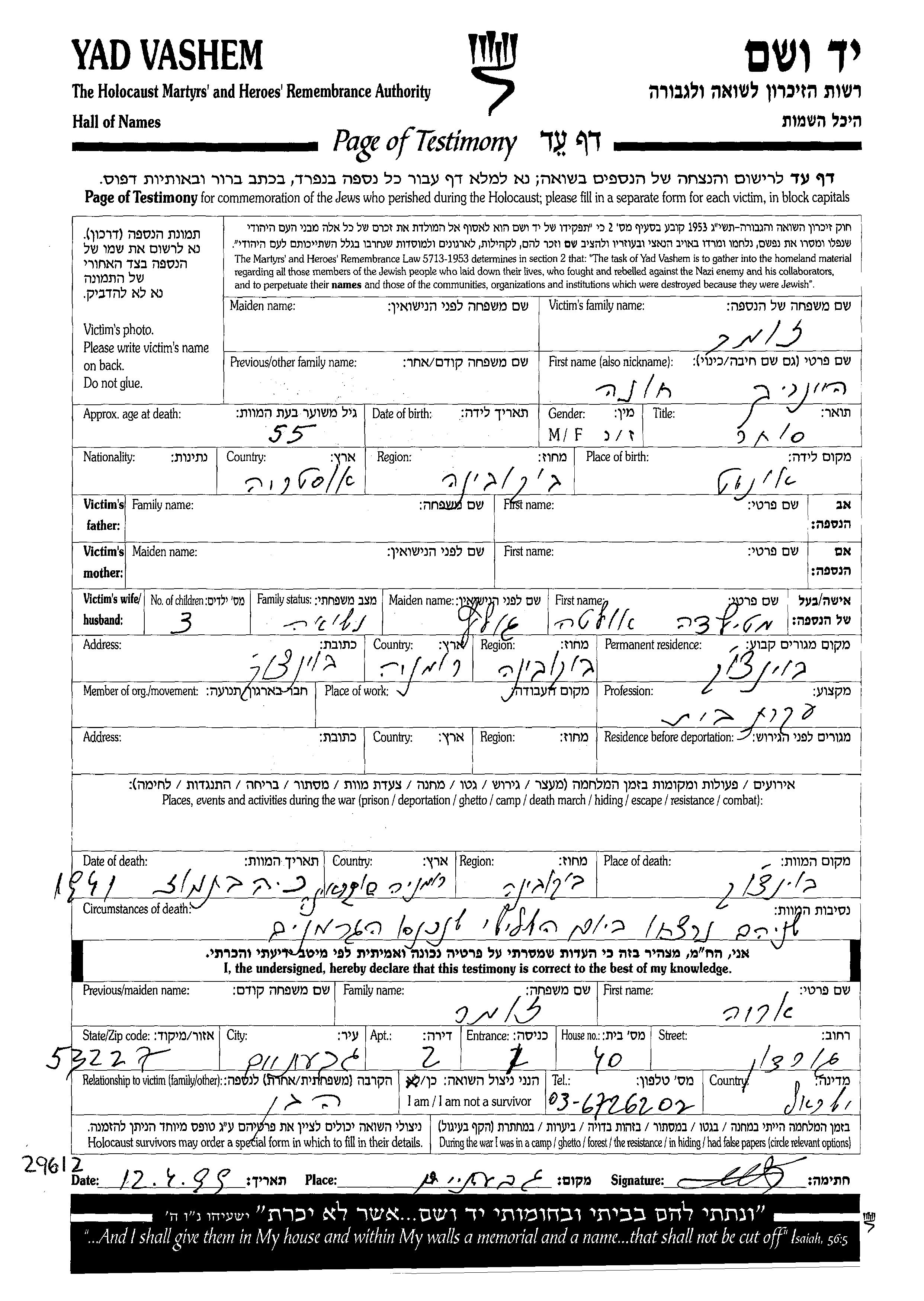 Yad Vashem - Pages of Testimony Names Memorial Collection
