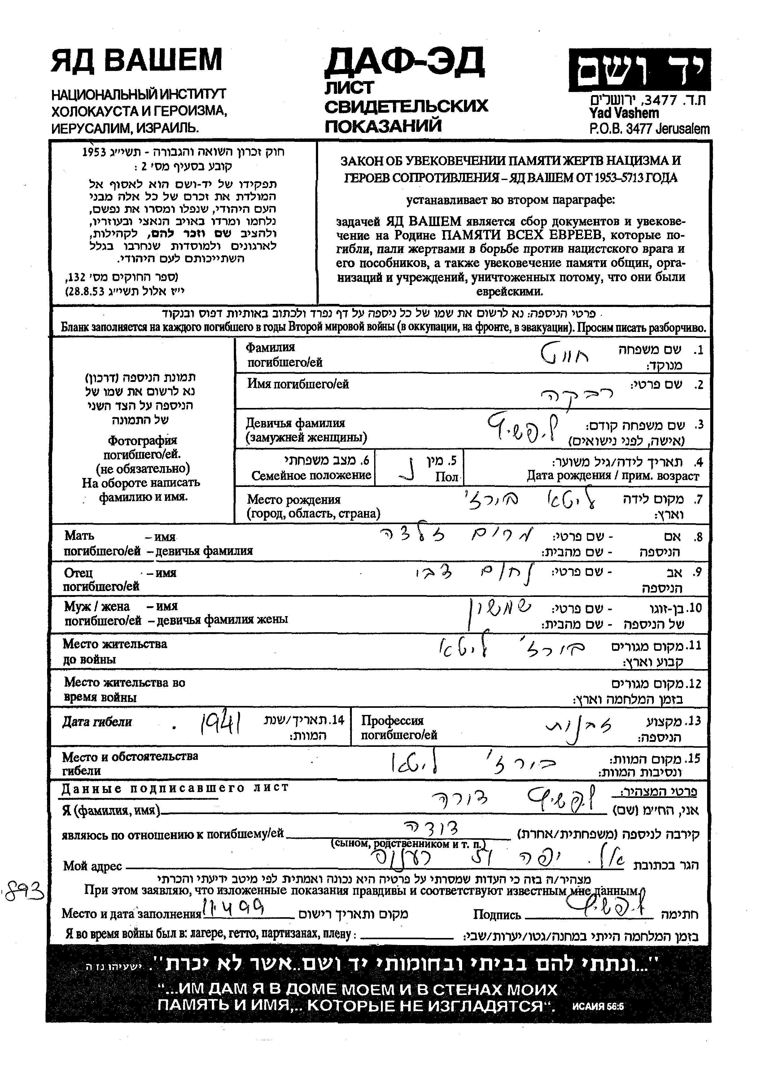 Yad Vashem - Pages of Testimony Names Memorial Collection