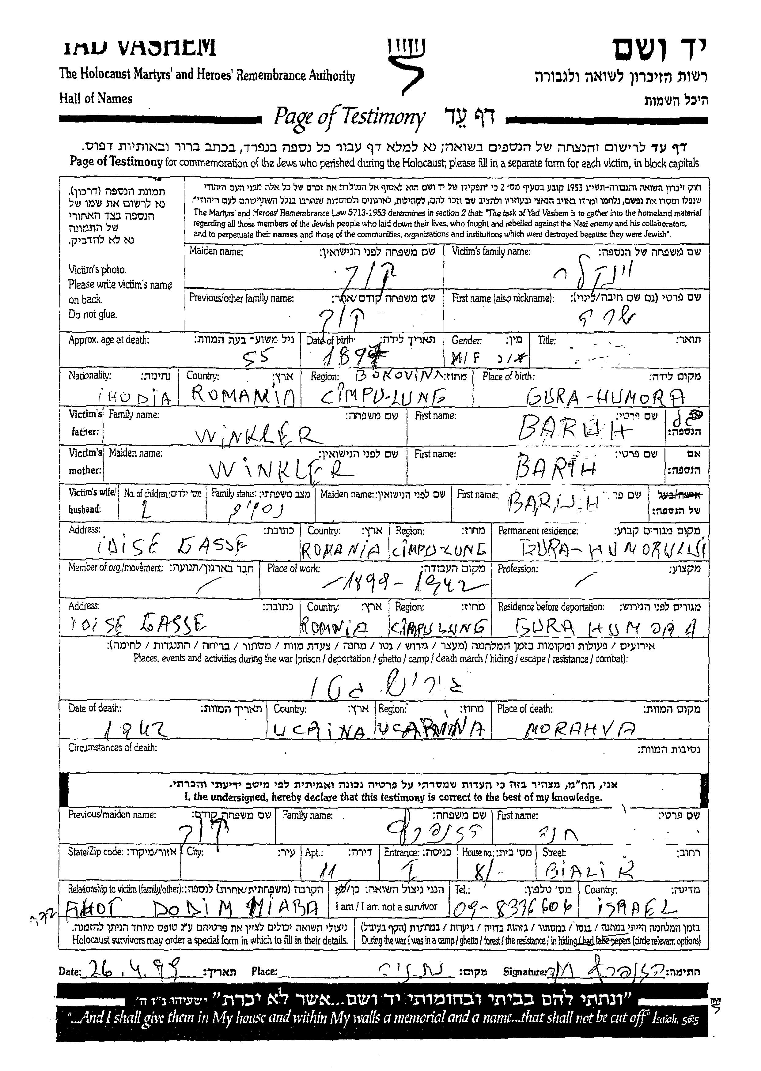 Yad Vashem - Pages of Testimony Names Memorial Collection