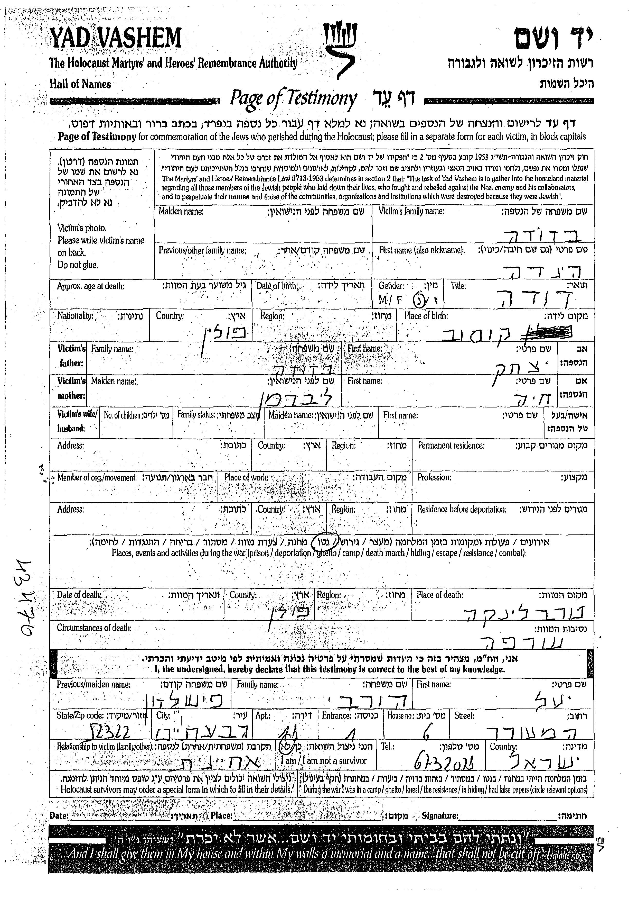 Yad Vashem - Pages of Testimony Names Memorial Collection