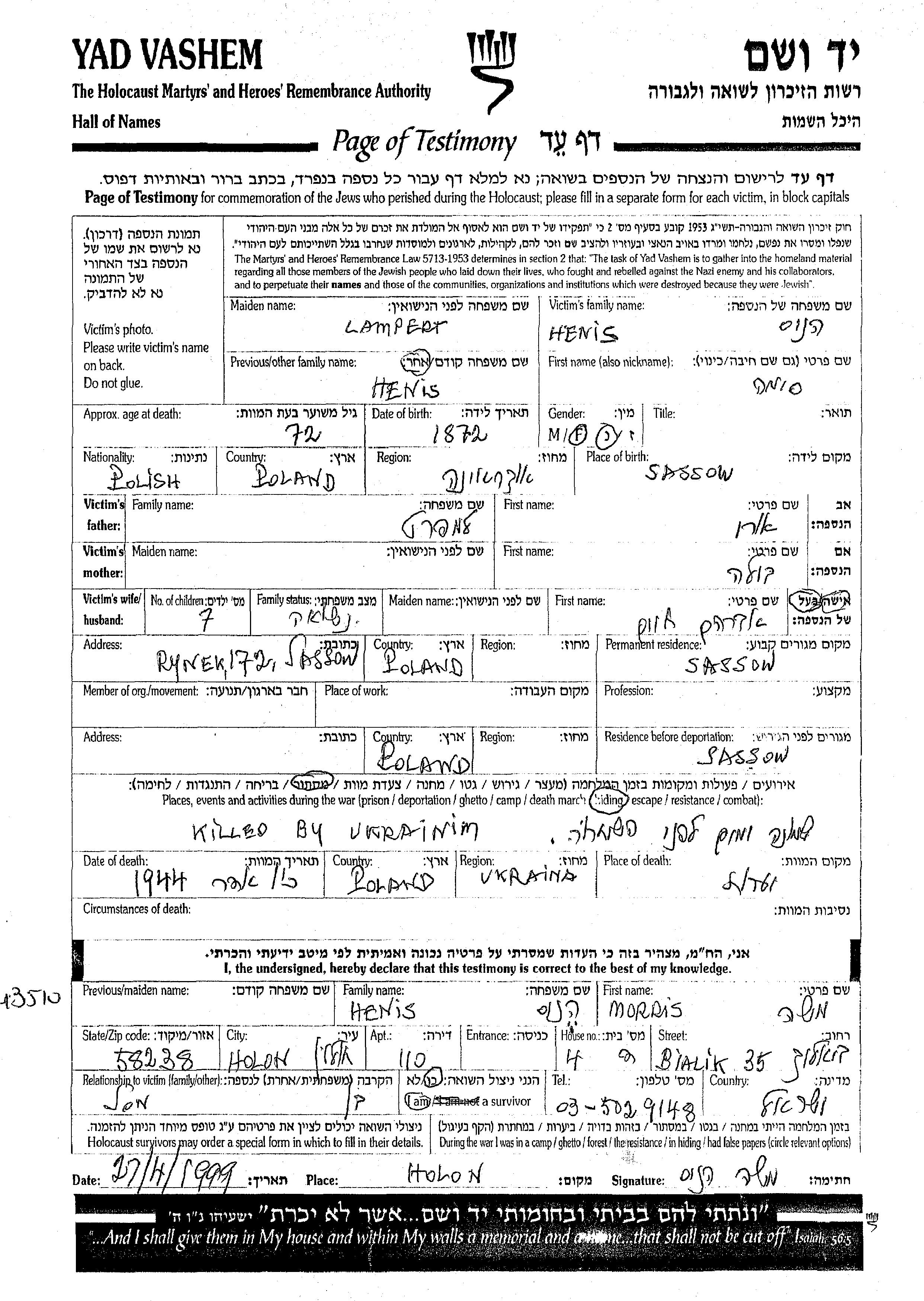 Yad Vashem - Pages of Testimony Names Memorial Collection