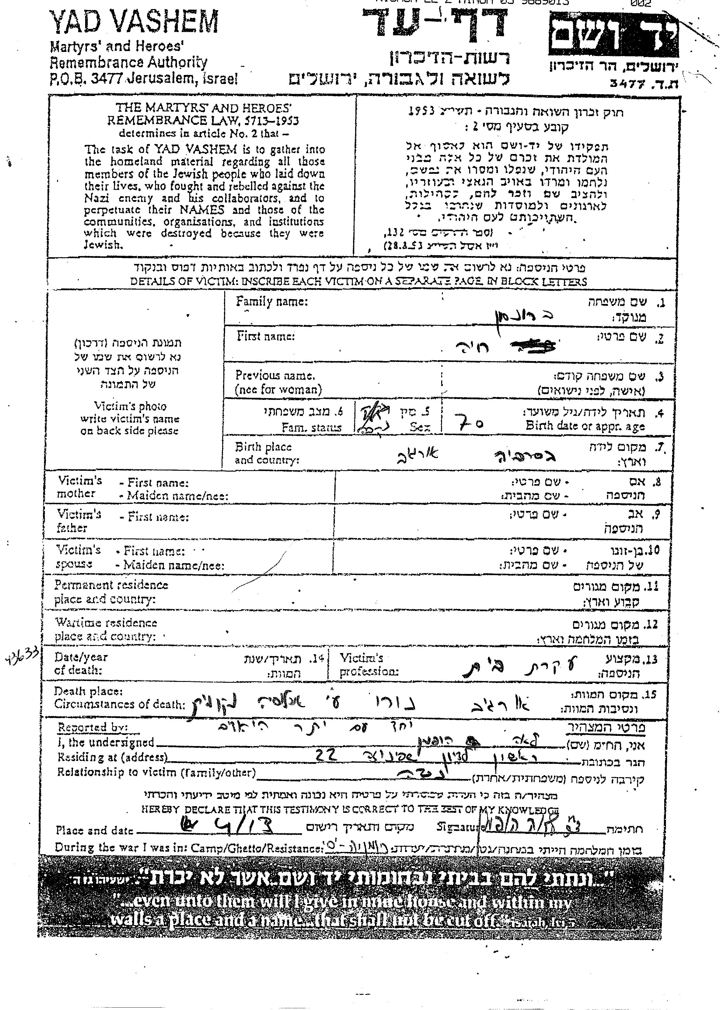 Yad Vashem - Pages of Testimony Names Memorial Collection