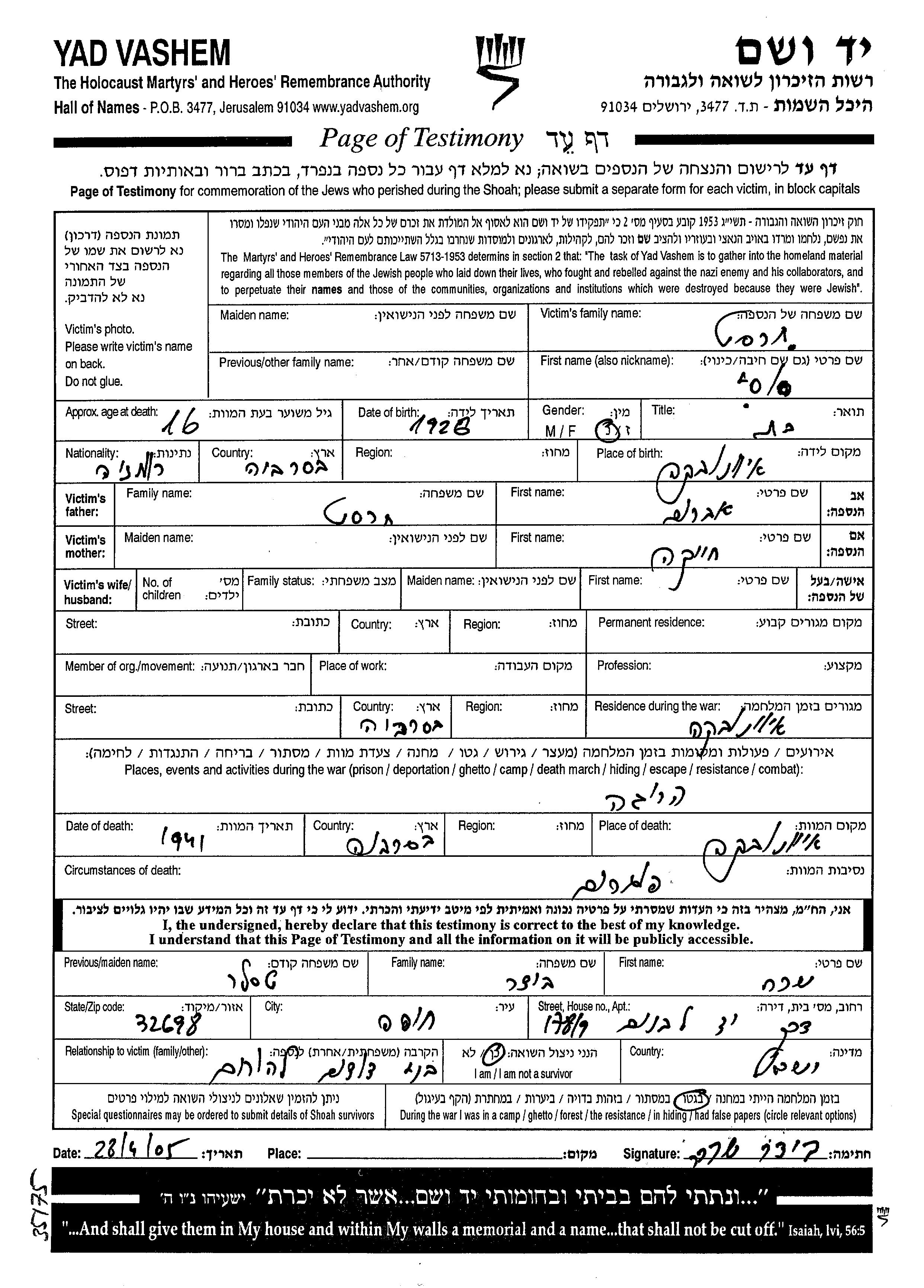 Recherche par date de la mort pendant la période de la Shoah: 1933-1945. Sélectionnez 'Exact'; dans la liste pour rechercher l'année exacte, ou sélectionner '+/- 2 ans'; ou '+/- 5 ans