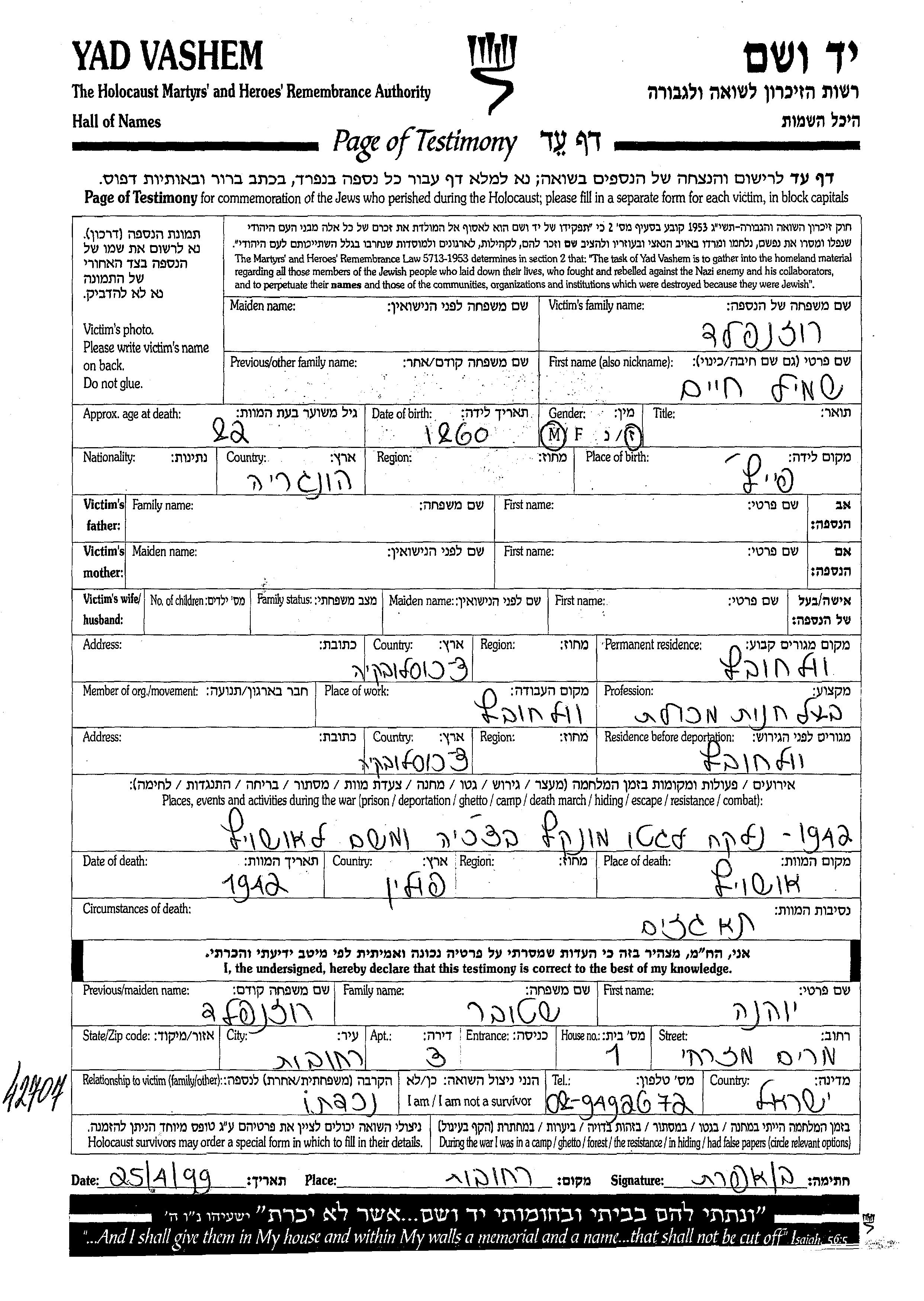 Yad Vashem - Pages of Testimony Names Memorial Collection