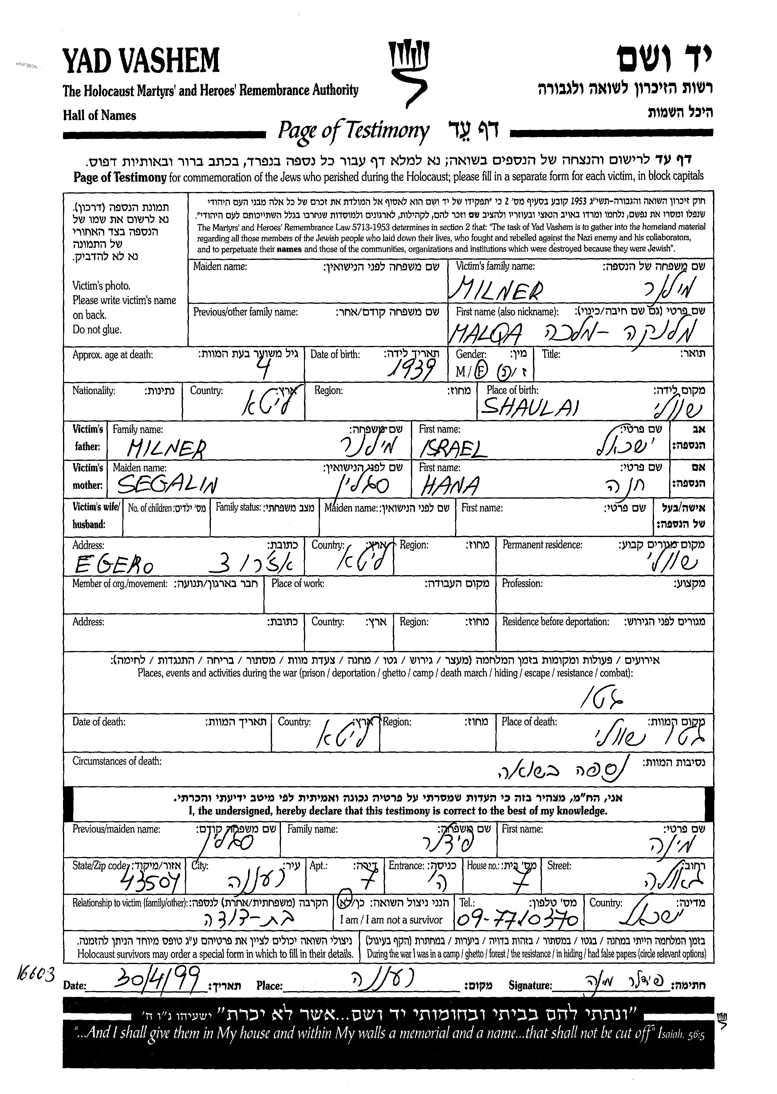 Yad Vashem - Pages of Testimony Names Memorial Collection