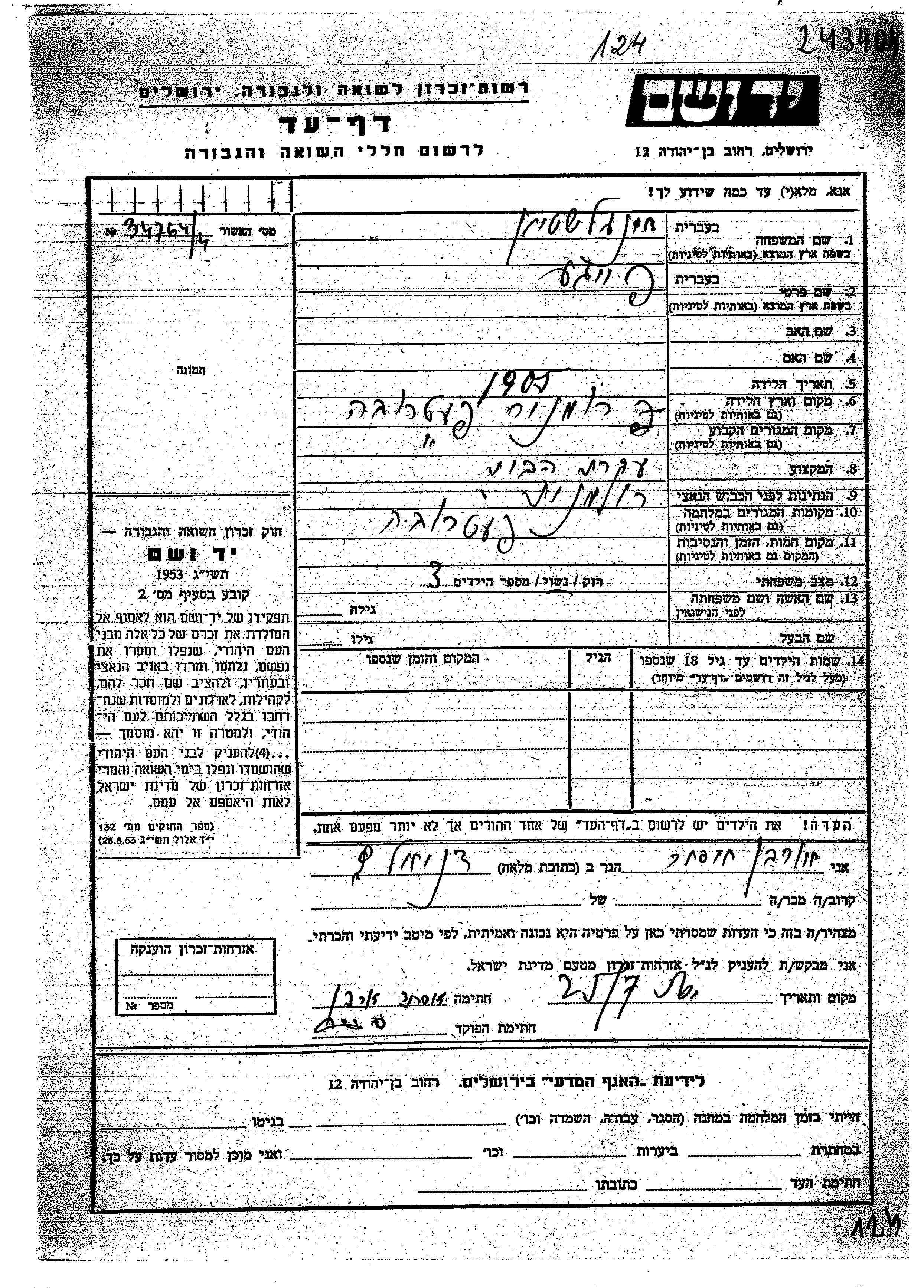 Yad Vashem - Pages of Testimony Names Memorial Collection