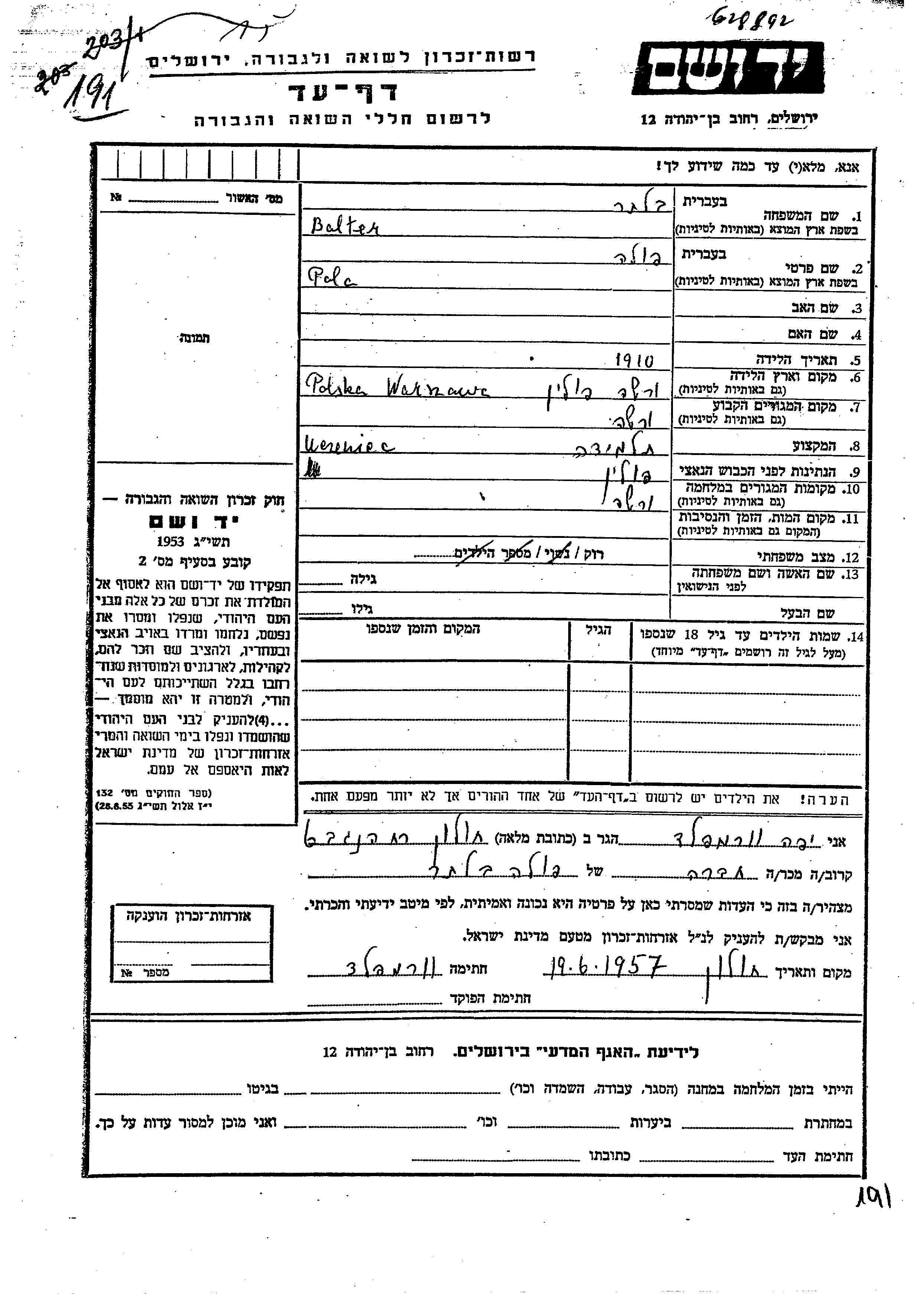 Yad Vashem - Pages of Testimony Names Memorial Collection