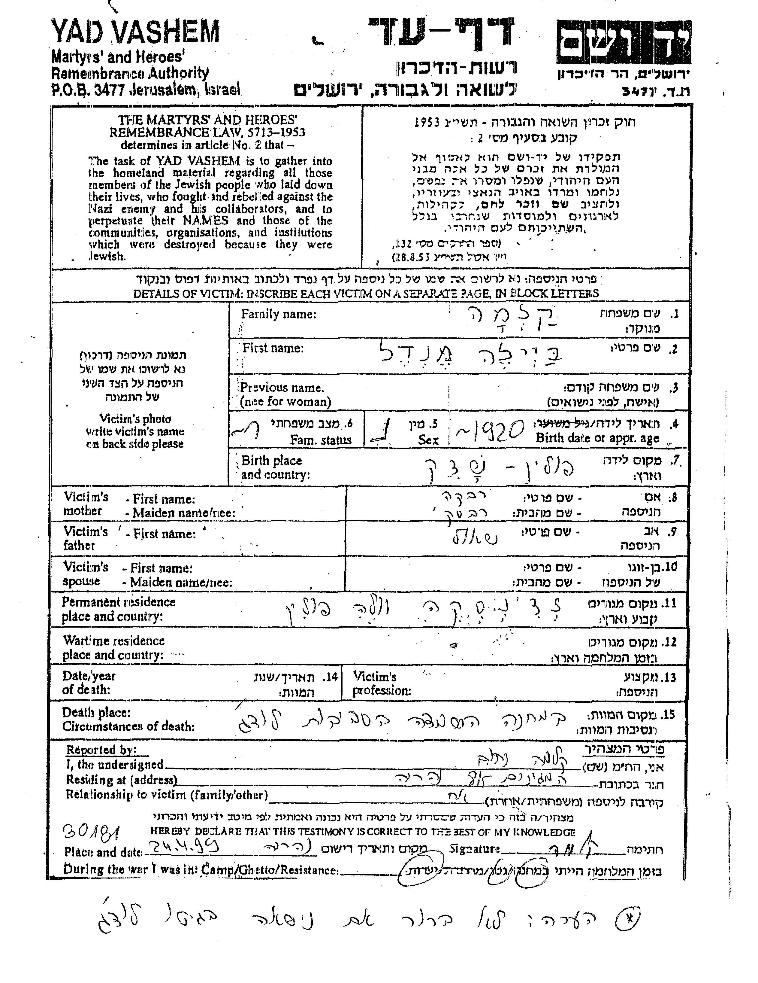 Yad Vashem - Pages of Testimony Names Memorial Collection