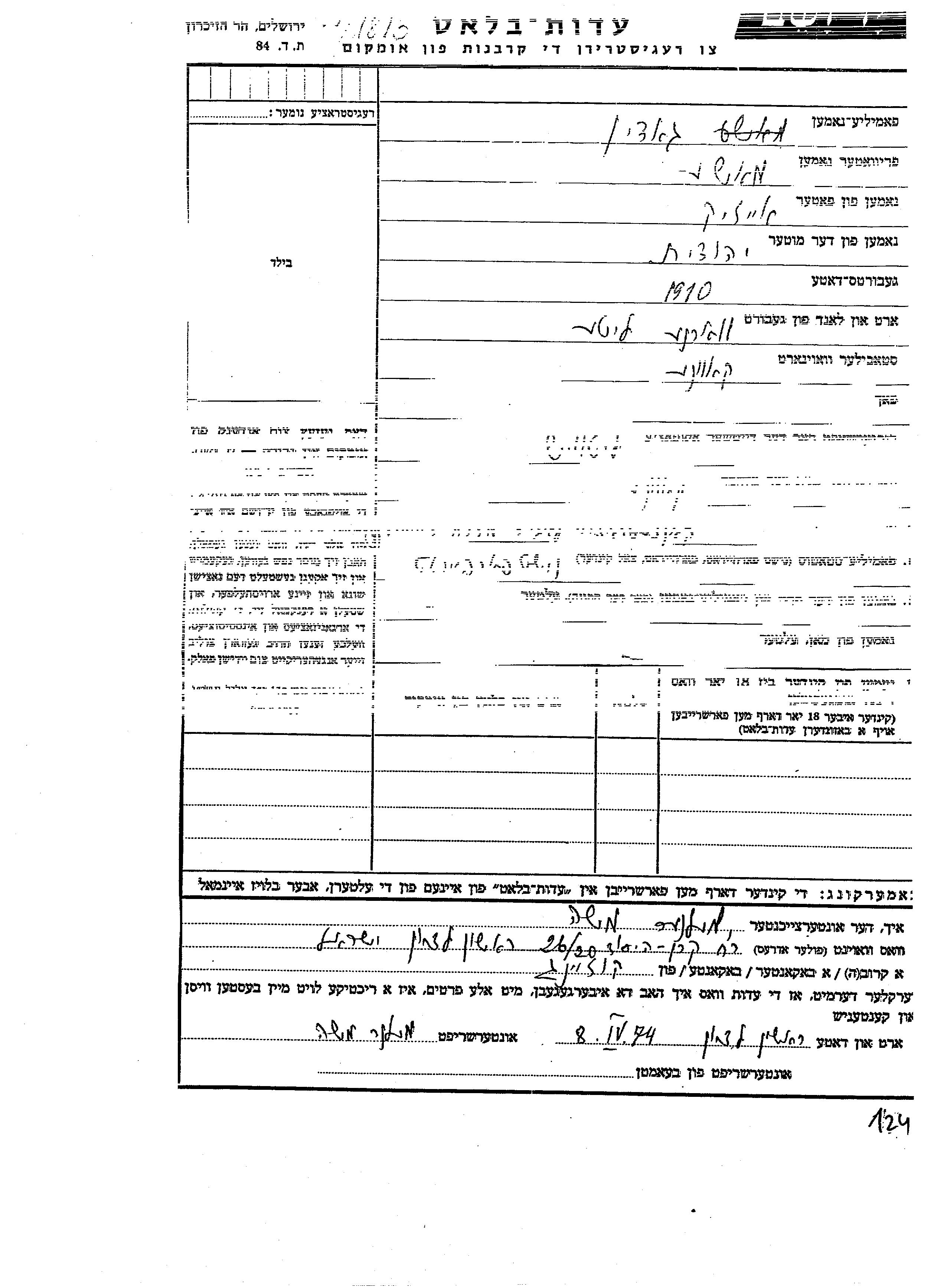Gadin Mashe 1910 Kovno, Lituanie Feuille de témoignage