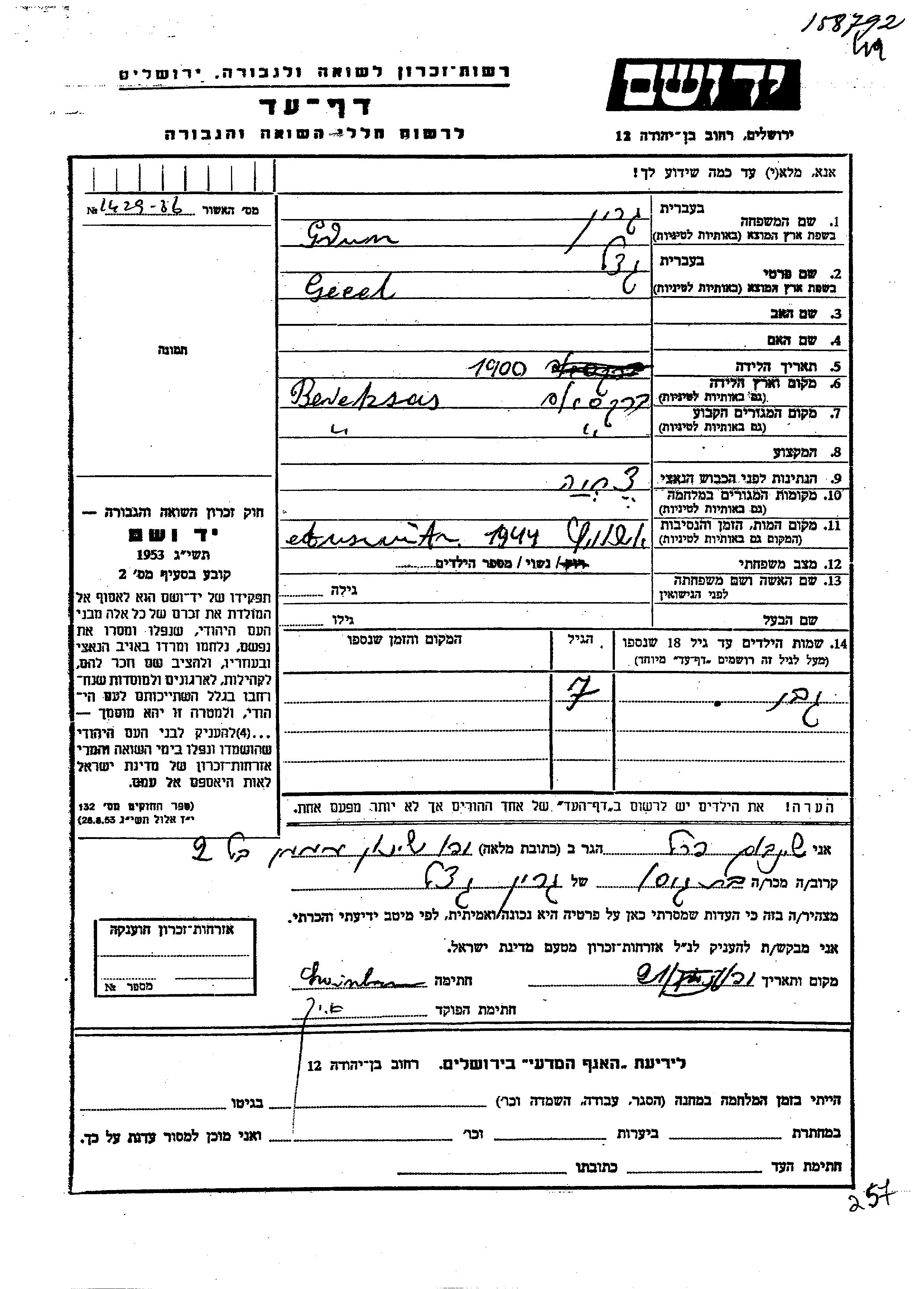 Yad Vashem - Pages of Testimony Names Memorial Collection