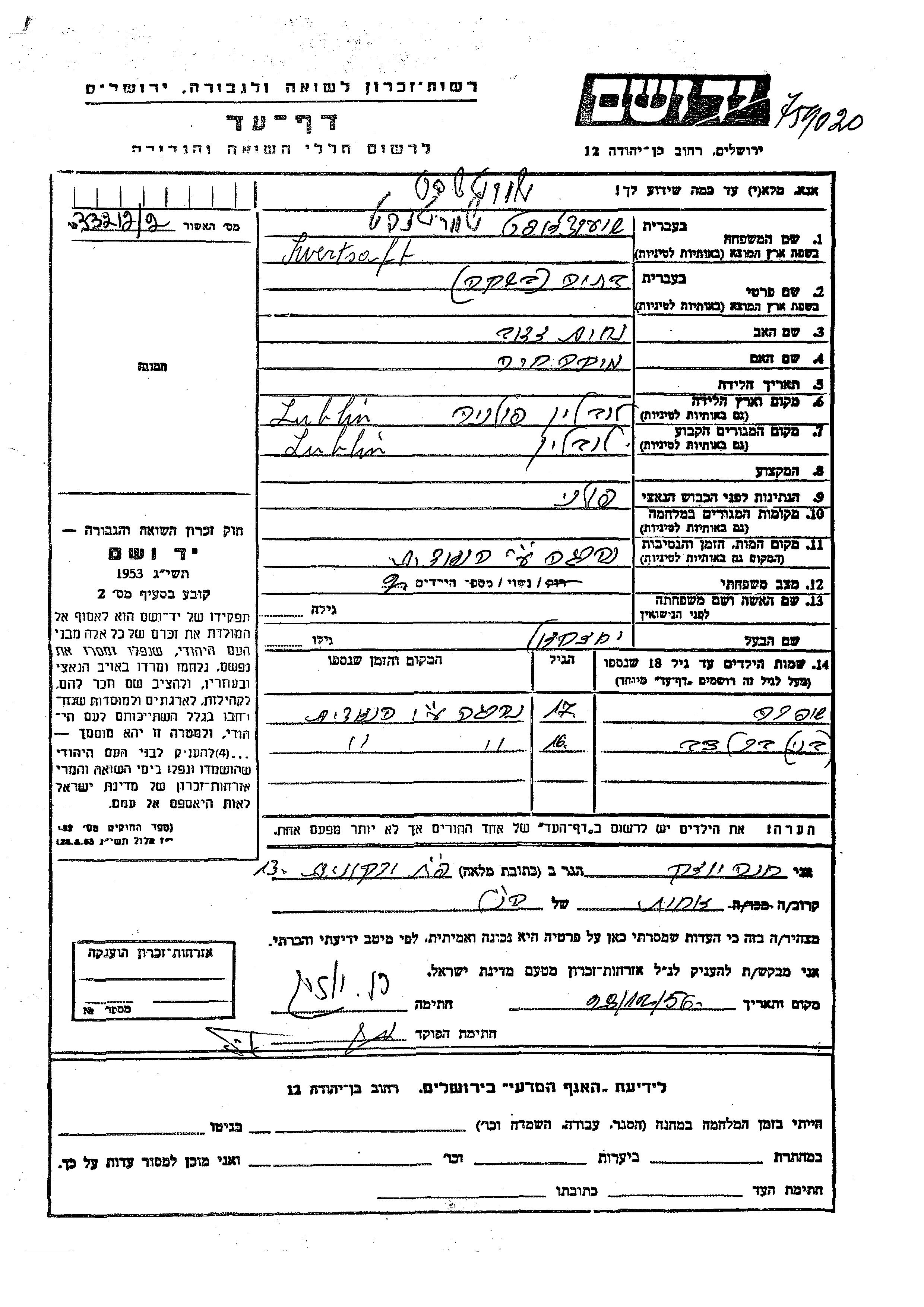 Recherche par date de la mort pendant la période de la Shoah: 1933-1945. Sélectionnez 'Exact'; dans la liste pour rechercher l'année exacte, ou sélectionner '+/- 2 ans'; ou '+/- 5 ans