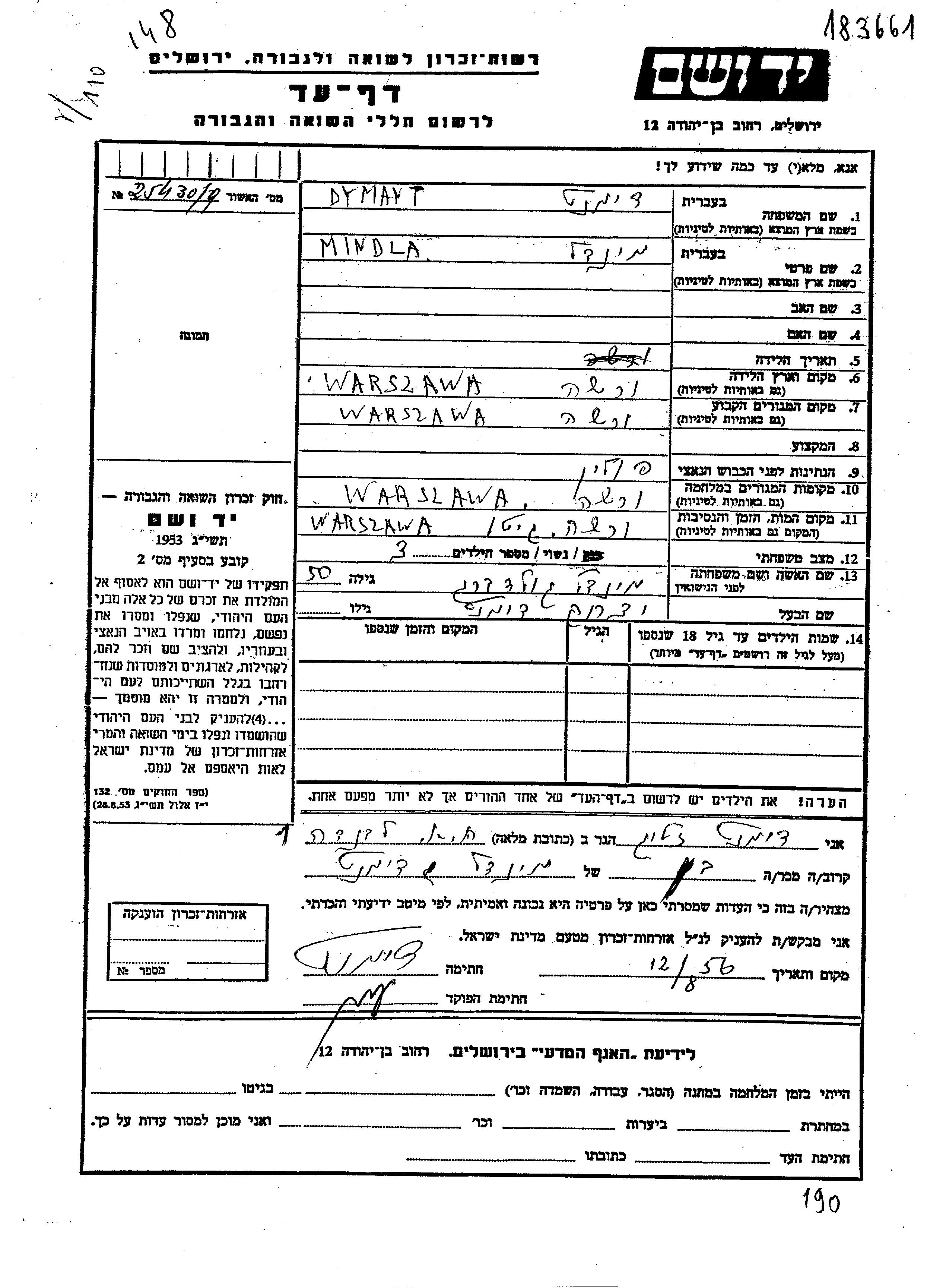 Mindla a été assassinée pendant la Shoah. Lieu de la mort: Warszawa, Pologne.