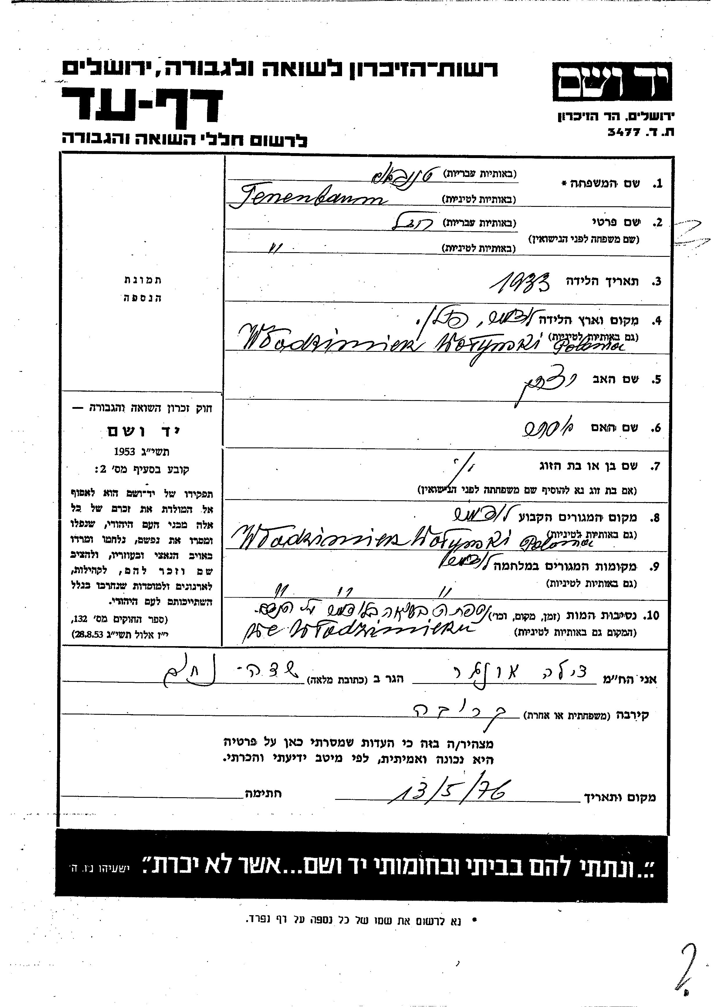 Yad Vashem - Pages of Testimony Names Memorial Collection