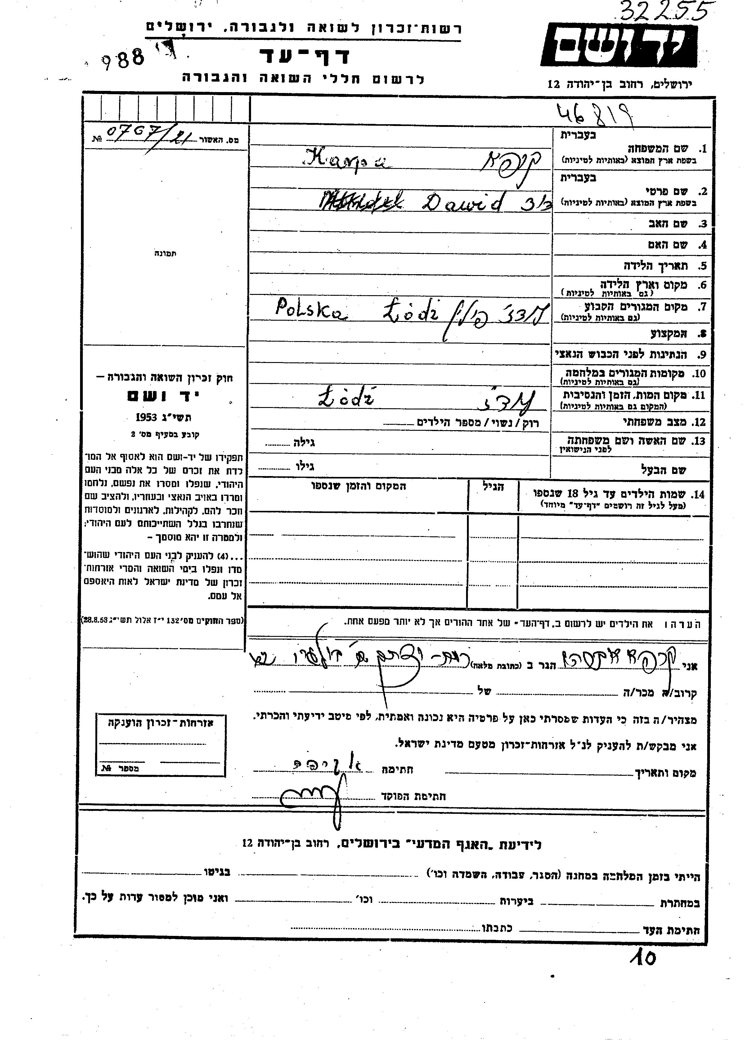 David a été assassiné pendant la Shoah. Lieu de la mort: Lodz, Pologne.