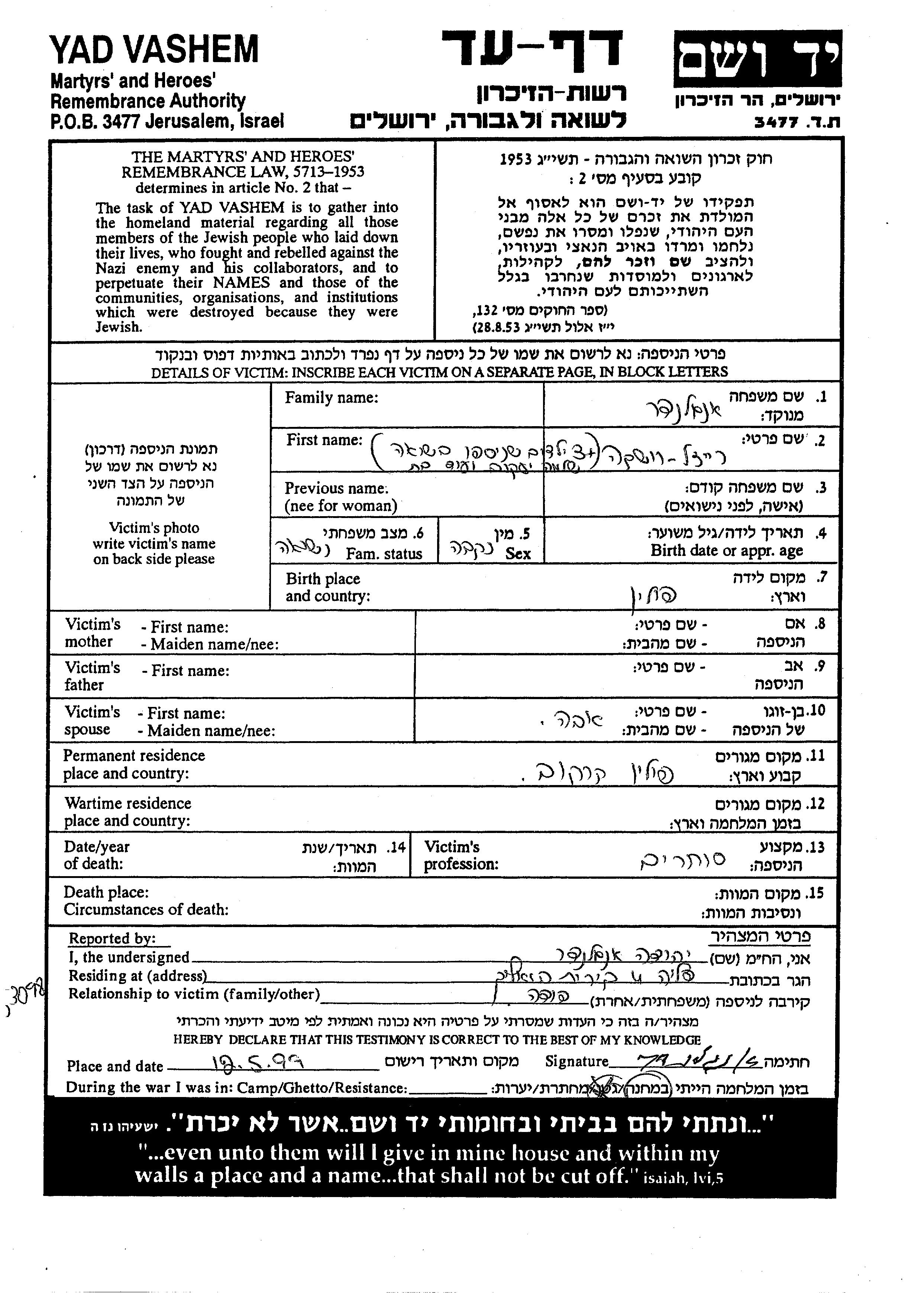 Yad Vashem - Pages of Testimony Names Memorial Collection