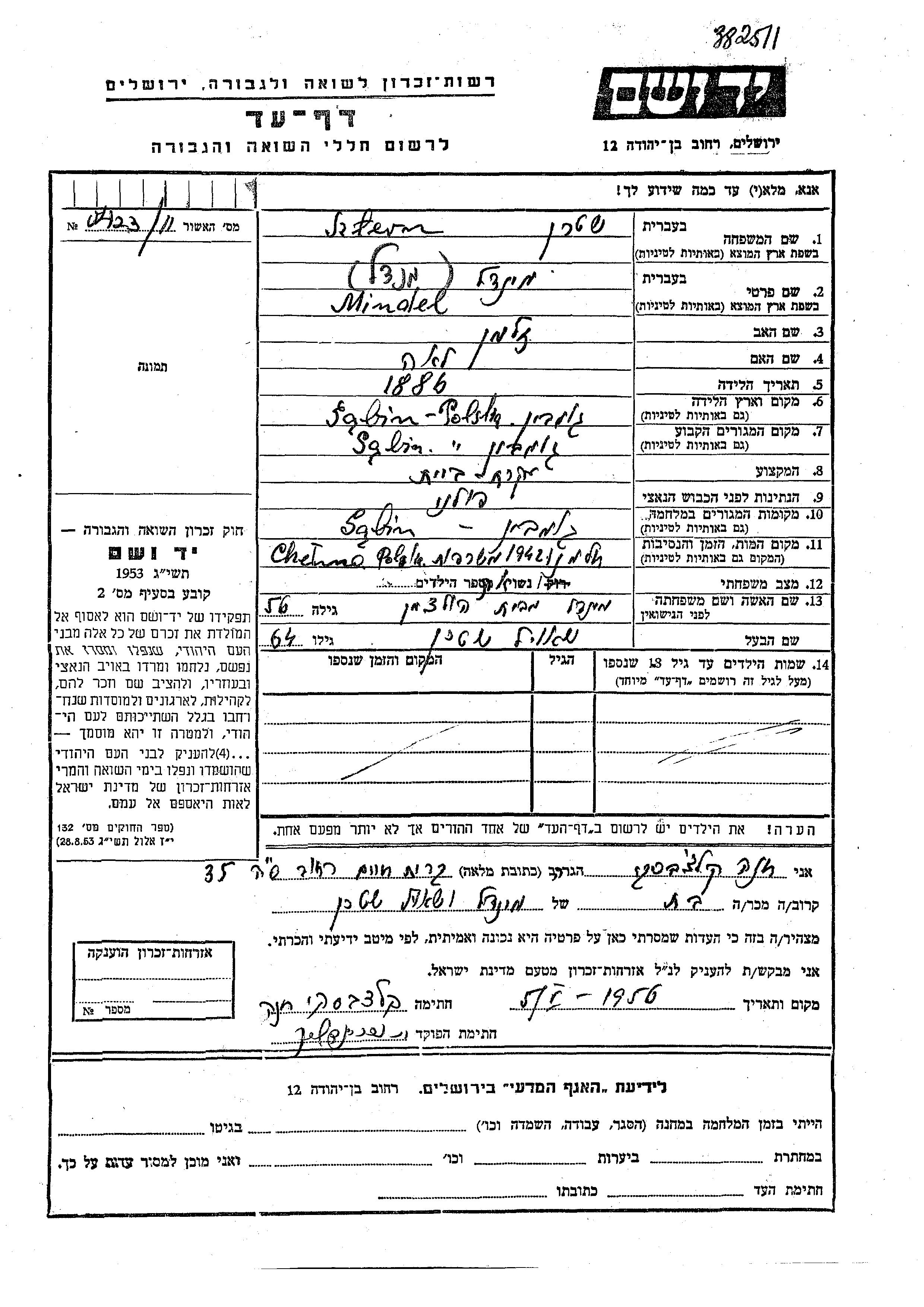 Yad Vashem - Pages of Testimony Names Memorial Collection