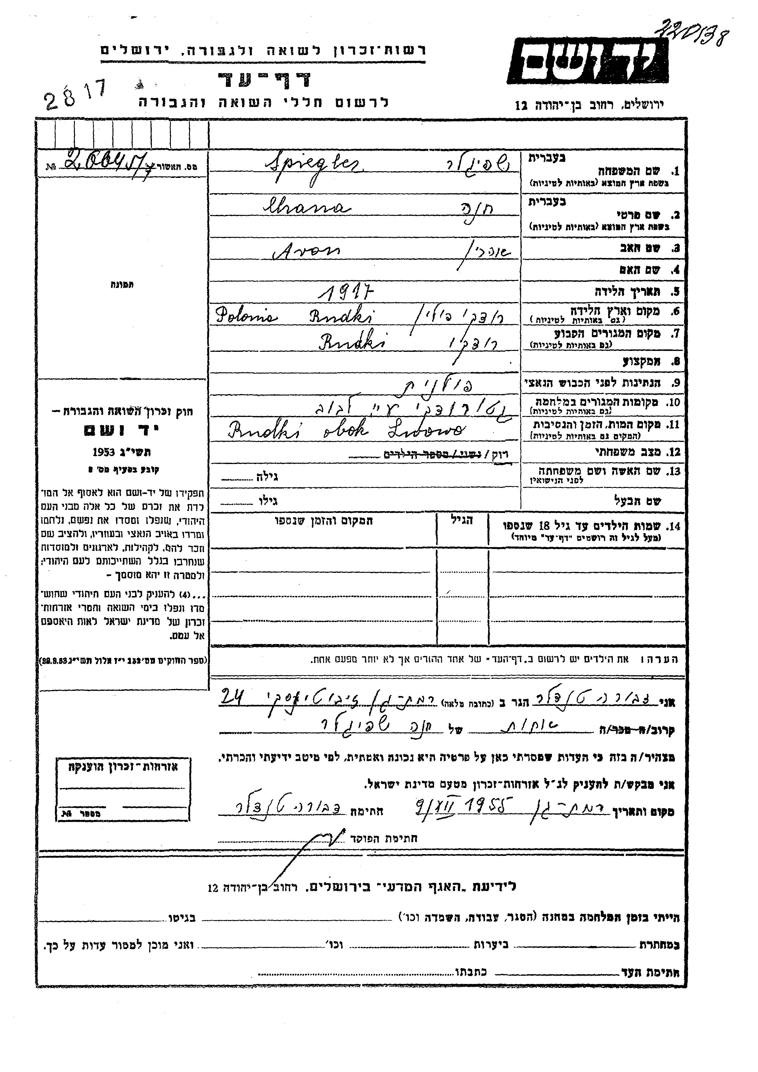 Yad Vashem - Pages of Testimony Names Memorial Collection