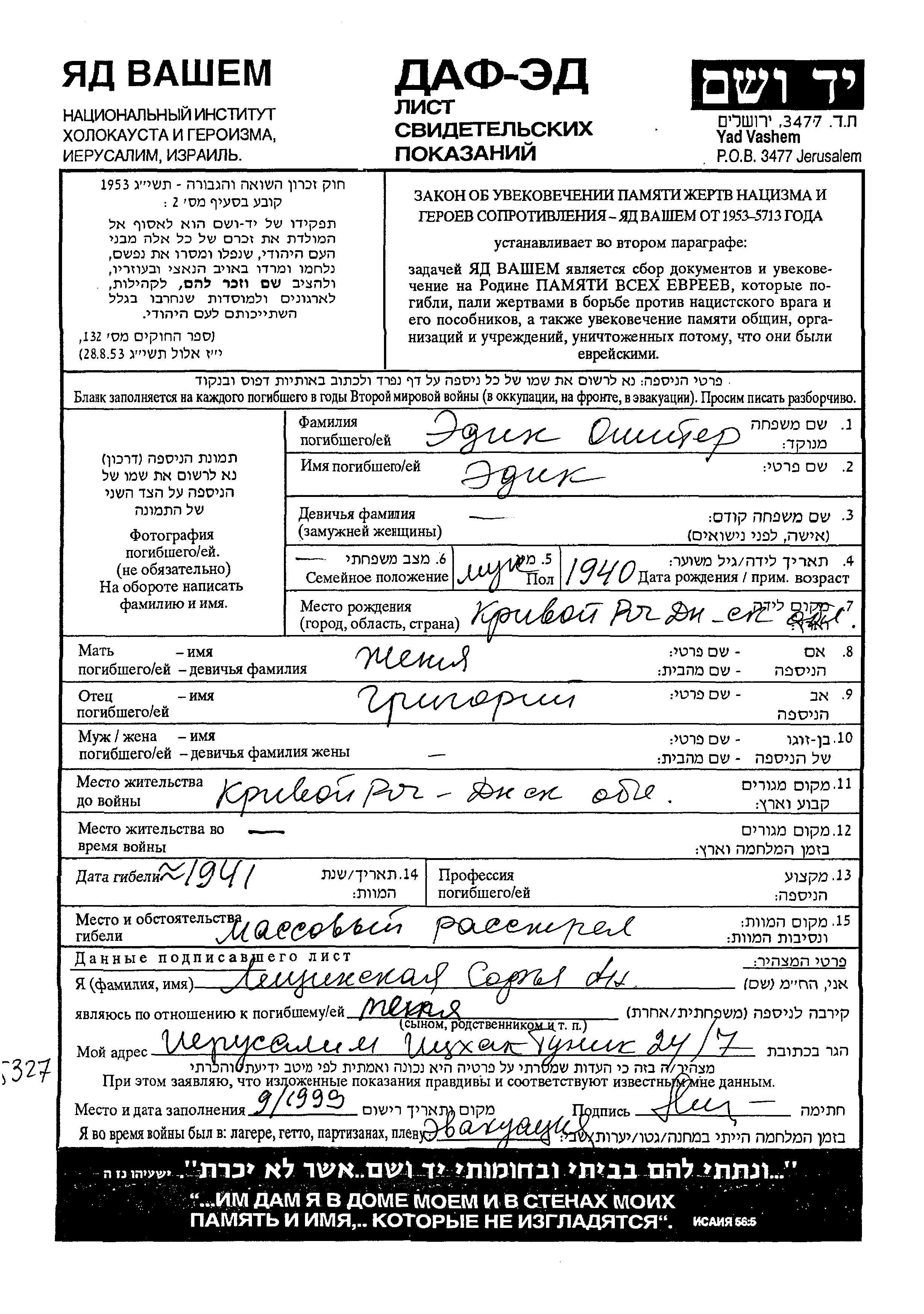 Recherche par date de la mort pendant la période de la Shoah: 1933-1945. Sélectionnez 'Exact'; dans la liste pour rechercher l'année exacte, ou sélectionner '+/- 2 ans'; ou '+/- 5 ans